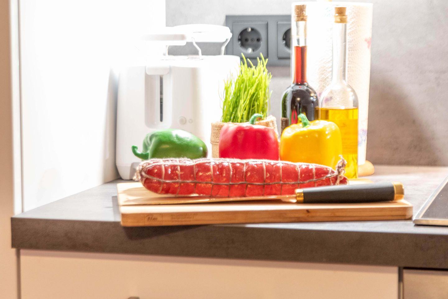 Hier können Sie bequem Ihr Frühstück vorbereiten – oder Sie bestellen frische Brötchen direkt unten in der urigen Bäckerei im Haus.
