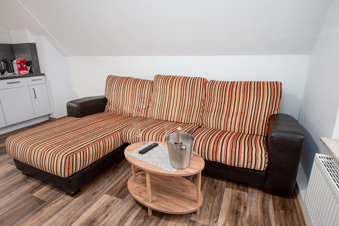 Die Ferienwohnung Auster befindet sich in dem historischen Alten Bauernstübchen von 1801 und bietet auf ca. 40 m² ein liebevoll gestaltetes Zuhause für Paare oder alleinreisende Gäste, die Ruhe, Stil und Komfort suchen. Die Verbindung aus modernem Wohnen und ehrwürdigem Gemäuer schafft eine einzigartige Atmosphäre, die zum Entspannen einlädt.