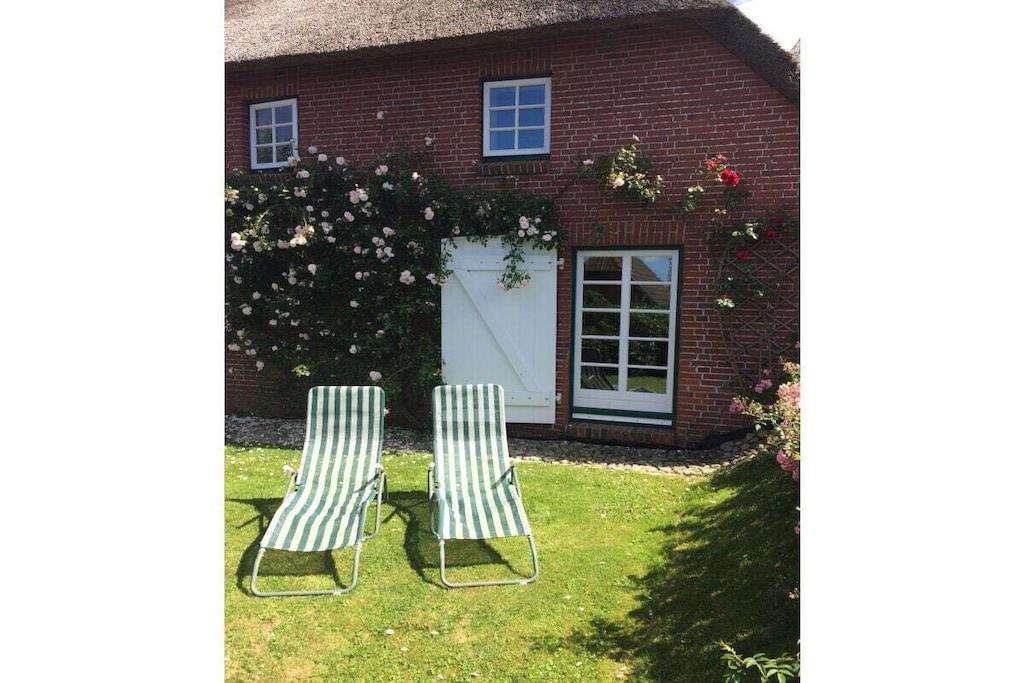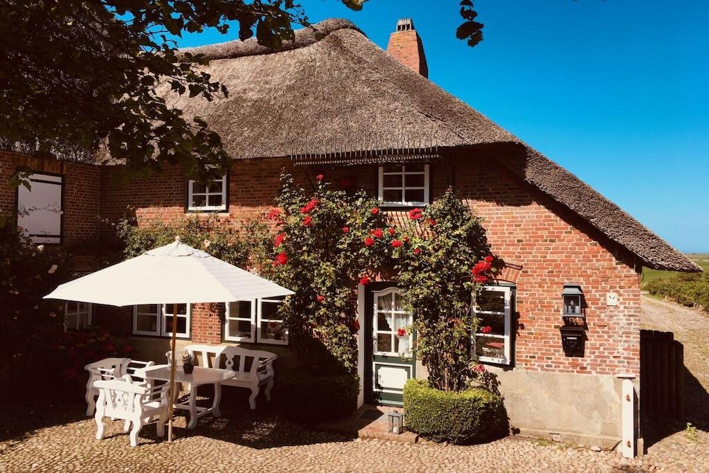 Das bietet Ihnen das Knechts Hûs: Geräumiges Reetdachhaus: Ca. 120 m² Wohnfläche für bis zu 6 Personen. Traumhafter Garten Ihr eigener Strandkorb, umgeben von einem alten Friesenwall und gemütlichen Gartenmöbeln in unserem Rosengarten. Gemütliche Schlafzimmer Drei Schlafzimmer mit jeweils einem Doppelbett: 1x 180 cm breit 2x 160 cm breit Kinderbetten Voll ausgestattete Küche Moderne Ausstattung mit Cerankochfeld, Backofen, Mikrowelle und Geschirrspüler. Zwei moderne Bäder WLAN und Telefon Kostenfreies WLAN und Festnetztelefonate innerhalb Deutschlands. Praktische Extras Kaminofen Kostenloser Parkplatz Reinigung Ab einem 14 tägigen Aufenthalt bieten wir Ihnen eine kostenfreie Zwischenreinigung an. ________________________________________________________________________________ Ideal für Familien und Radfahrer Unser Haus ist perfekt für Familien und Fahrradfreunde: Erkunden Sie die Insel mit dem Rad oder genießen Sie die Ruhe und Schönheit Ihres Urlaubsdomizils. Bei Ihrer Ankunft oder am Folgetag wird Sie unsere Gästebetreuerin begrüßen. Sie macht Sie mit dem Haus vertraut und versorgt Sie mit Empfehlungen und Insidertipps, um das Beste aus Ihrem Aufenthalt herauszuholen. Die Gästekarten werden Ihnen persönlich übergeben.