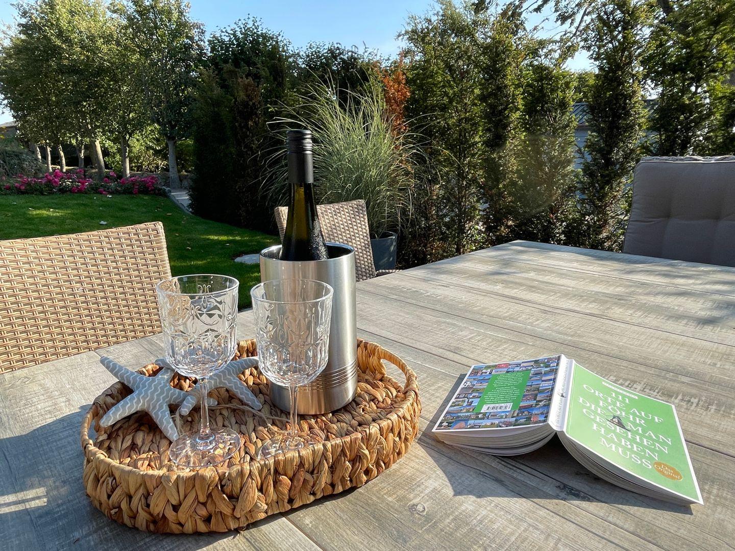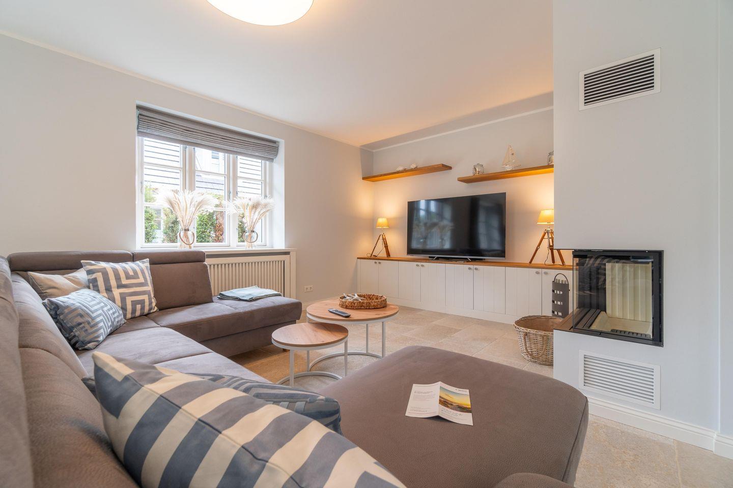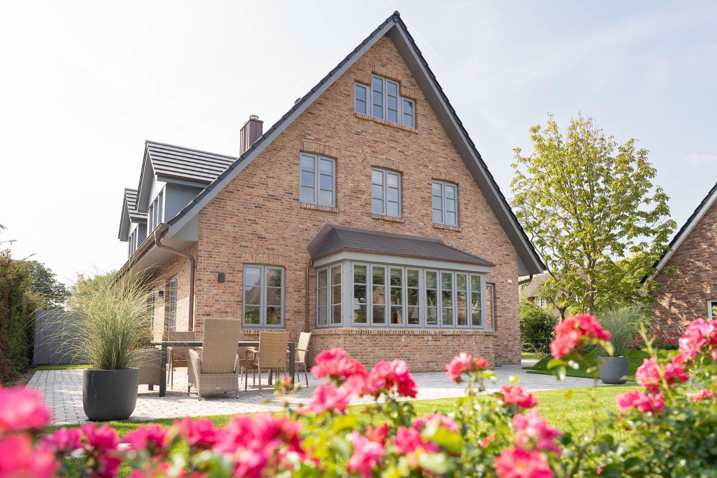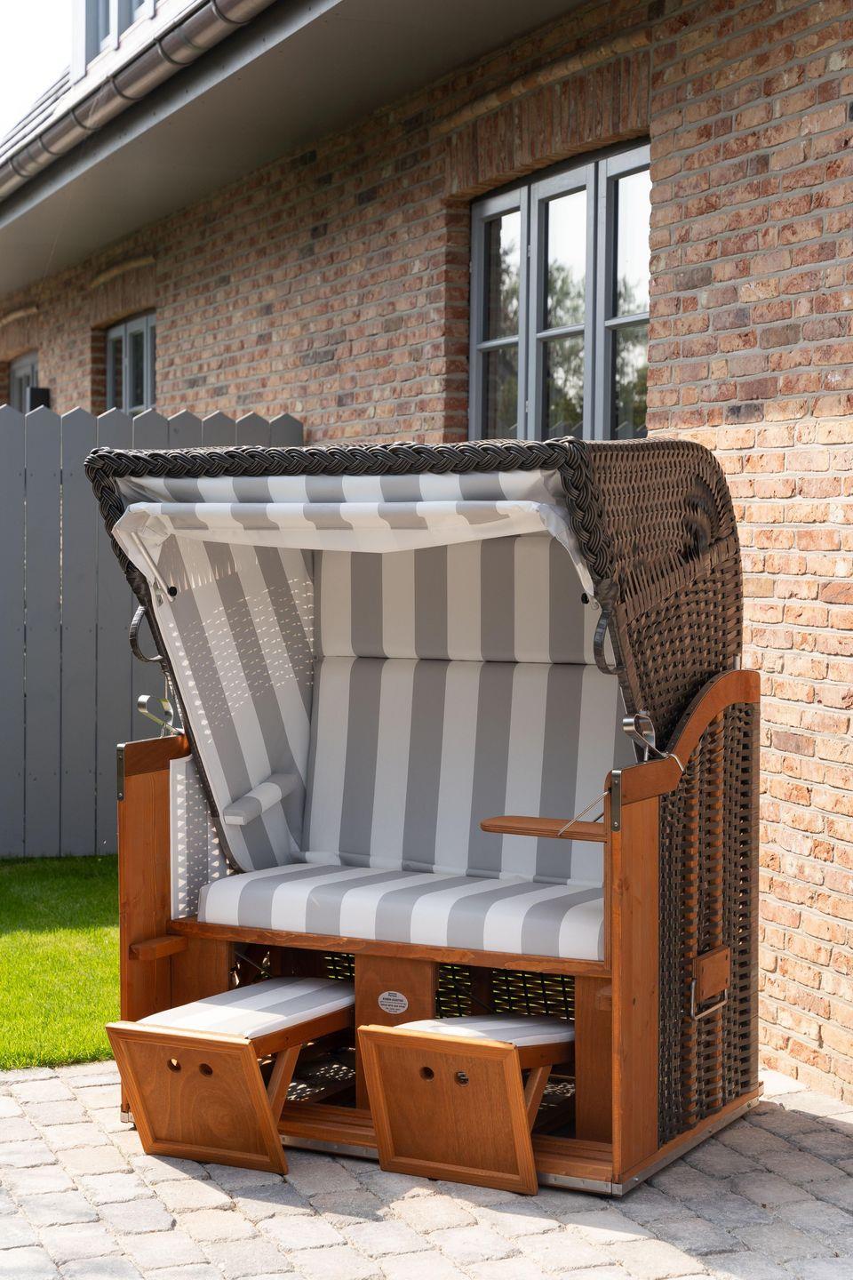 Luxuriöse Doppelhaushälfte auf Föhr mit Sauna, Kamin, Garten und Strandkorb für entspannte Urlaubstage.
