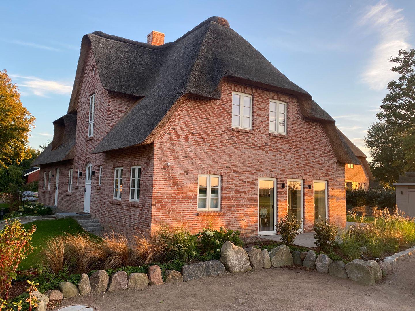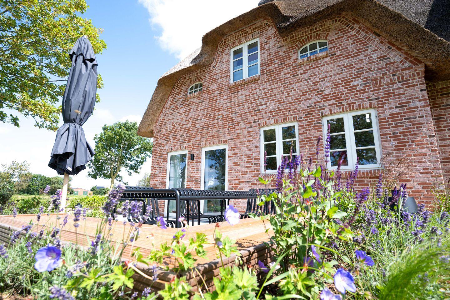 Von außen ein traditionelles Reetdachhaus, kontrastiert der Innenraum mit einem modernen Design und individuell angefertigten Einbaumöbeln.