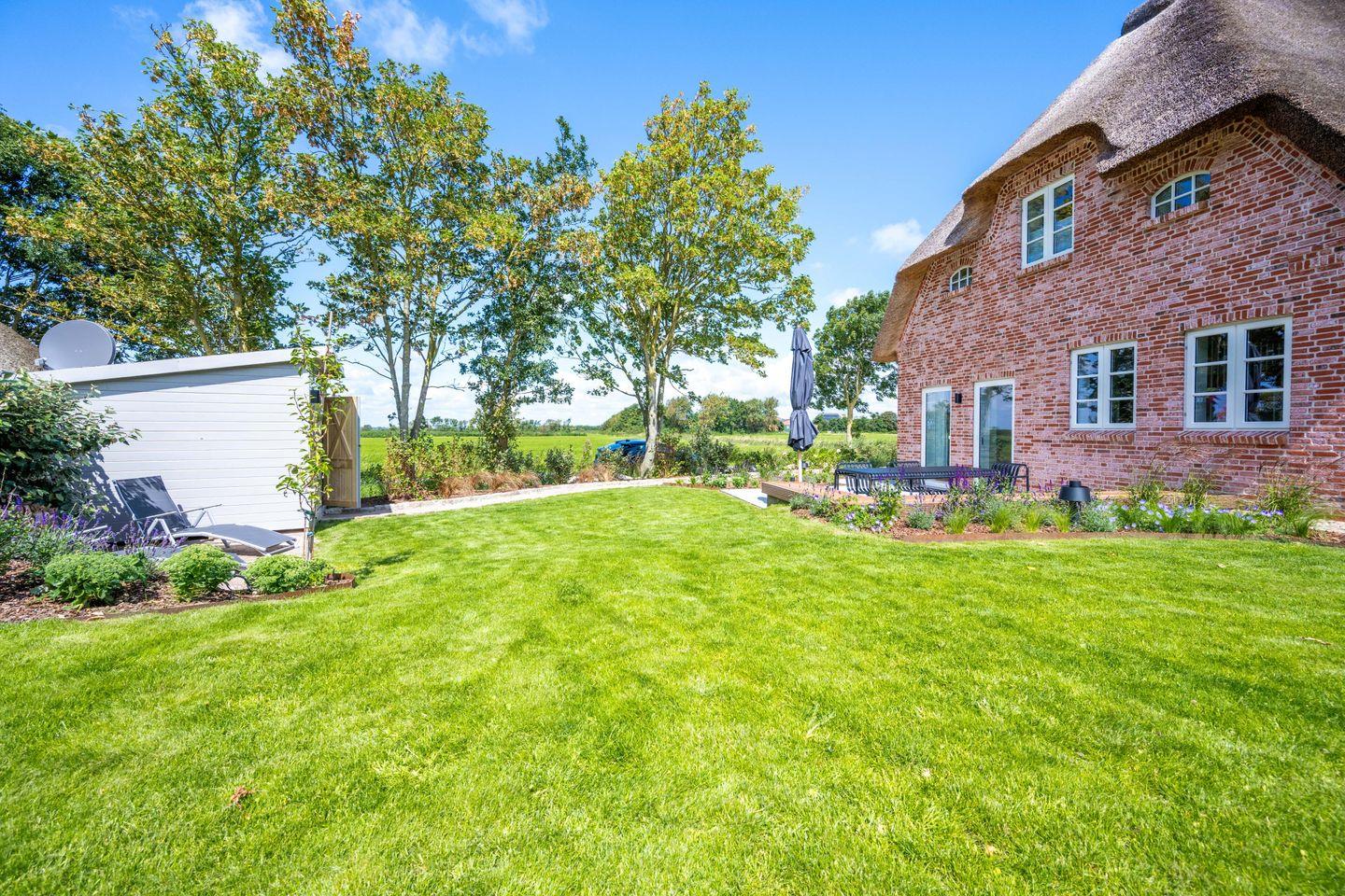 Architektenhaus mit freiem Blick über die Föhrer Marsch- und Wiesenlandschaft. Exklusive und modern eingerichtete Haushälfte unter Reet mit eigener Sauna, Kaminofen und liebevoll ausgewählten Designobjekten. Großzügig geschnitten, mit puristischer Innenarchitektur – ein stiller Rückzugsort für vier Personen und komfortabel für Familien bis zu sieben Gästen. Entspannen Sie auf der Terrasse oder im Garten.