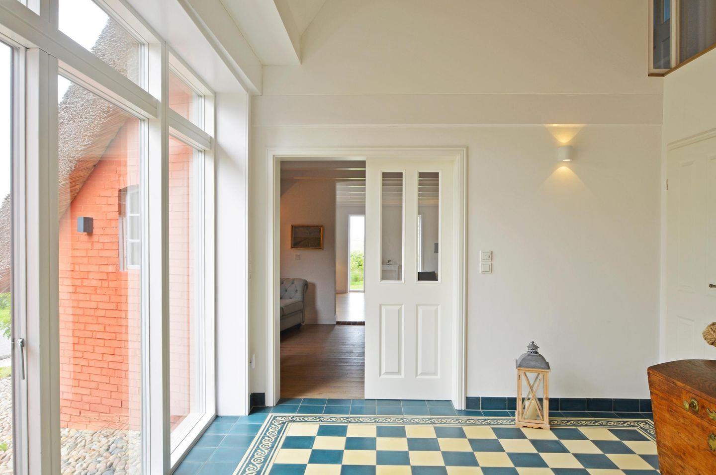 Lieben Sie die Weite der Marsch und modernen Komfort, traditionellen Landhausstil und zeitgenössisches Scandi-Design? Dann sind Sie im Reethus Dörpsend genau richtig! Die alte Hofstelle am Eingang zur Midlumer Marsch wurde in den vergangenen Jahren mit viel Liebe zum Detail umgebaut. Entstanden sind zwei äußerst großzügige Häuser mit neuen und antiken Möbeln, offenem Kamin bzw. Kachelofen, je fünf Schlafzimmern, 4 Bädern und eigener Sauna. Verbringen Sie einen wunderschönen Urlaub in diesen modernen, über 300m² großen Häusern.