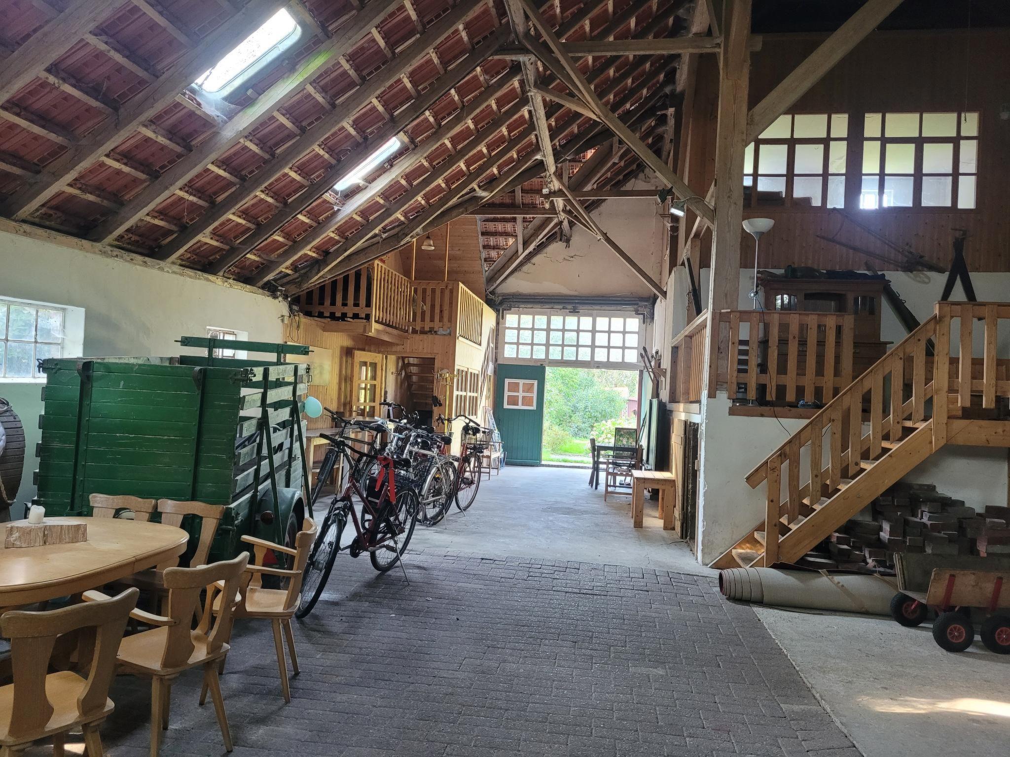 Sie sind herzlich eingeladen, den großen Gartenbereich und die Scheune mitzunutzen - ideal auch bei schlechtem Wetter. Im Außenbereich stehen Sitzgelegenheiten zur Verfügung. In der Scheune können außerdem mitgebrachte Fahrräder untergebracht werden.
