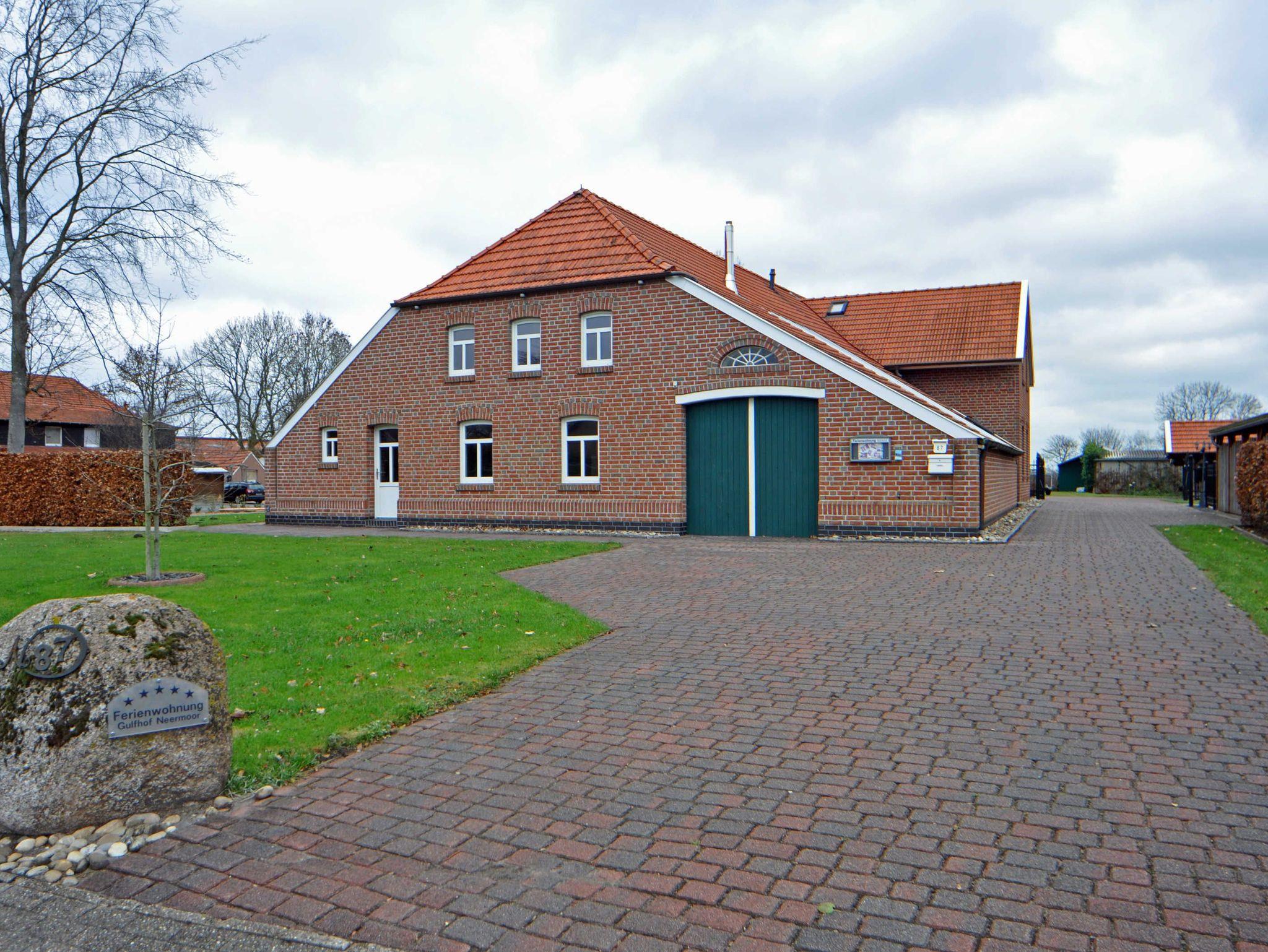 Der restaurierte Gulfhof liegt in einem ruhigen, aber dennoch zentralen Ortsteil von Neermoor. Eine Terrasse und der Garten mit Grill und einen Schwimm-Naturteich (zur Mitbenutzung) stehen zur Verfügung. Auch eine Sauna kann nach Absprache mit dem Vermieter genutzt werden.