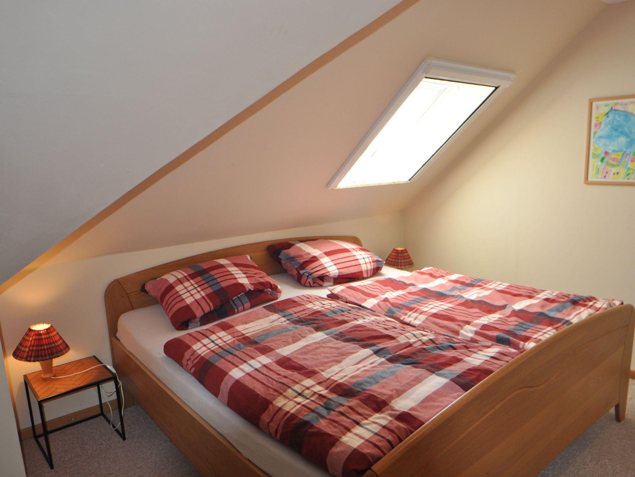 100 qm große Oberwohnung für bis zu drei Personen. Großes Wohnzimmer mit Garnitur, Fernseher sowie einem Schreibtisch, komplett ausgestattete Einbauküche mit Spülmaschine und Essbereich für vier Personen, Badezimmer mit Badewanne/Dusche und WC sowie ein Schlafzimmer mit Doppelbett und ein Einzelzimmer mit Einzelbett (90 x 200 cm). Kinder-Reisebett steht zur Verfügung. Im Erdgeschoss befindet sich ein großer Eingangsbereich mit Garderobe und Schuhablage. Alle Fenster sind mit Fliegengittern und Außenjalousien ausgestattet.