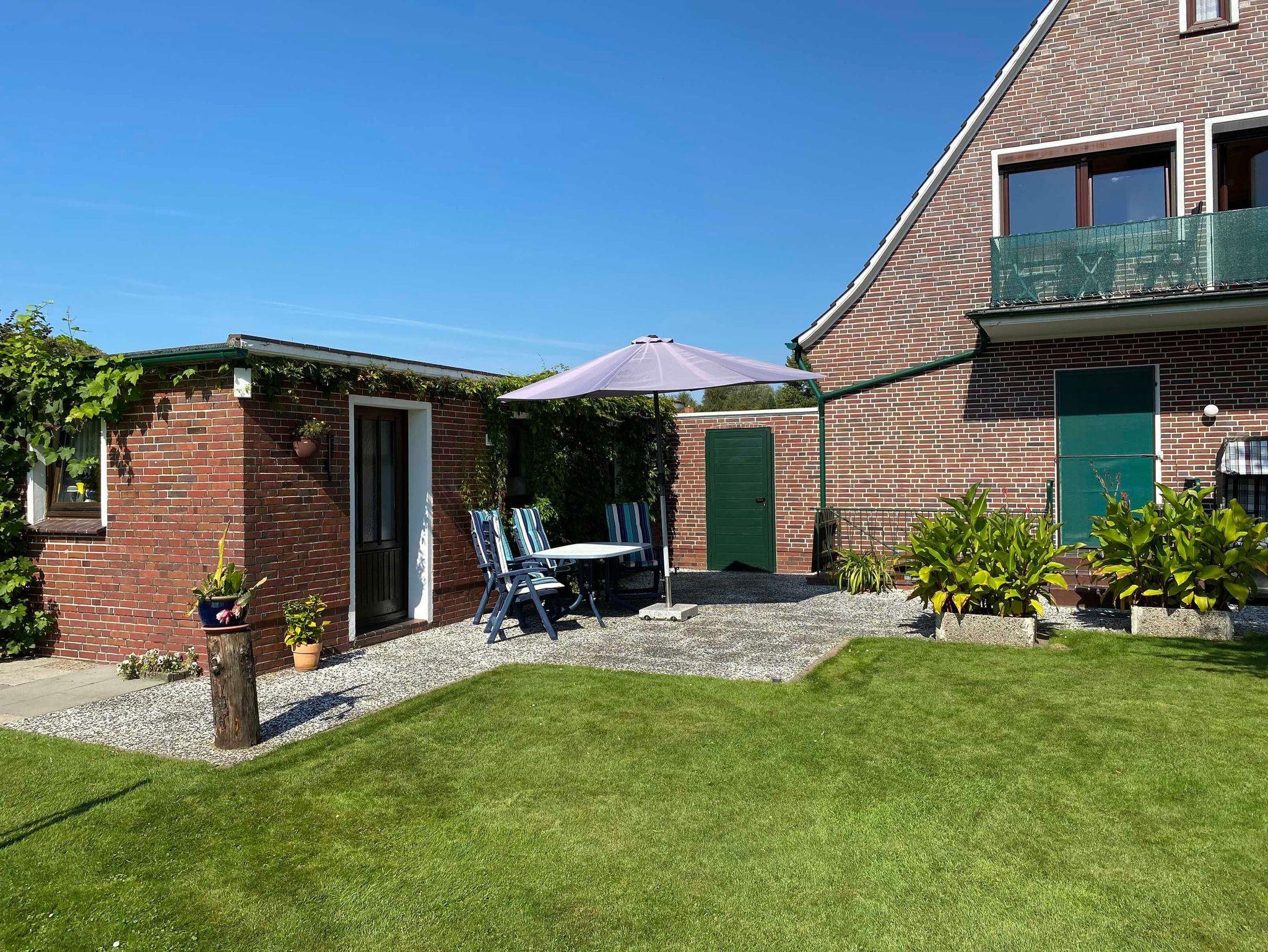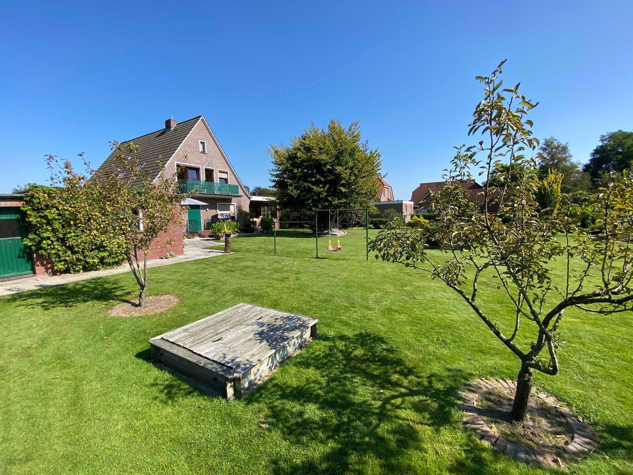 Die Ferienwohnung An der Wieke befindet sich in ruhiger Kanal-Lage im Herzen der Ortschaft Jheringsfehn. Der Südbalkon der Ferienwohnung bietet einen schönen Ausblick auf den großen Garten mit Terrasse des Hauses. Außerdem hat man von dort eine freie Sicht in die Natur. Hier stehen Ihnen Gartenmöbel und ein Grillplatz sowie ein Sandkasten und eine Spielwiese für Ihre Kinder zur Verfügung.