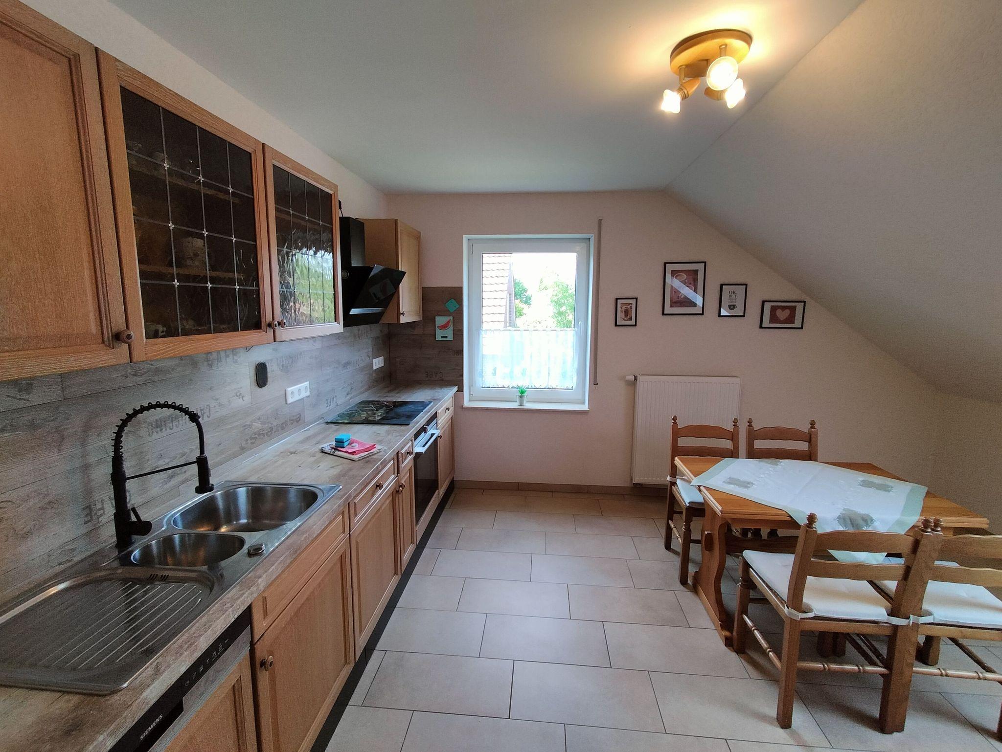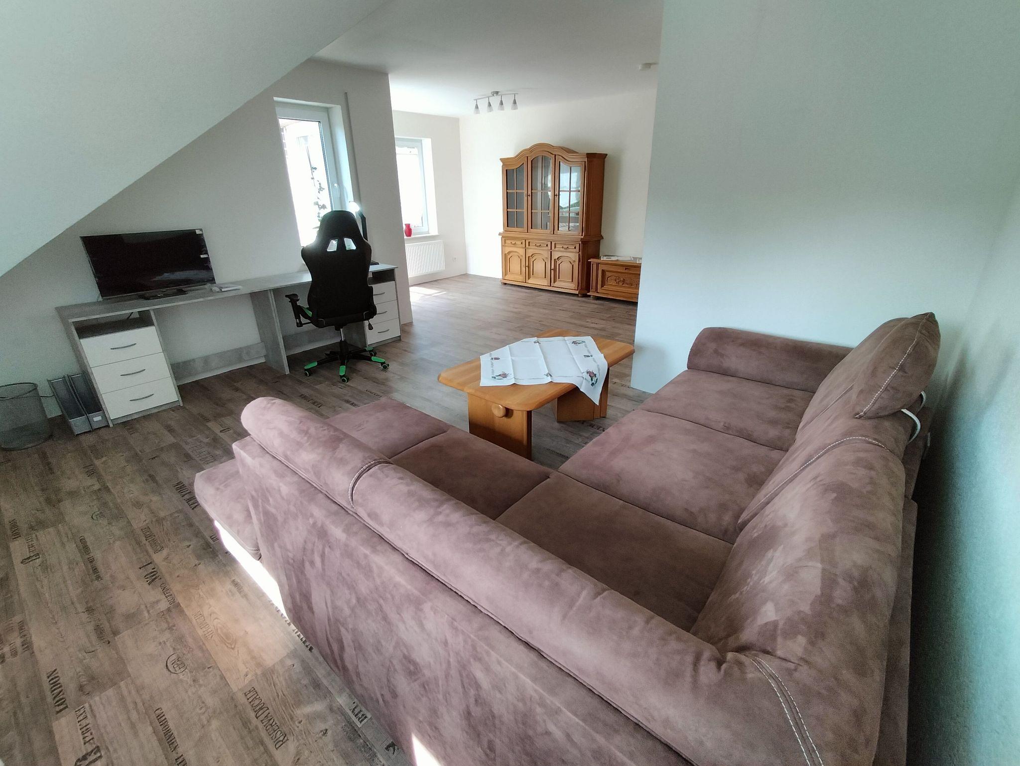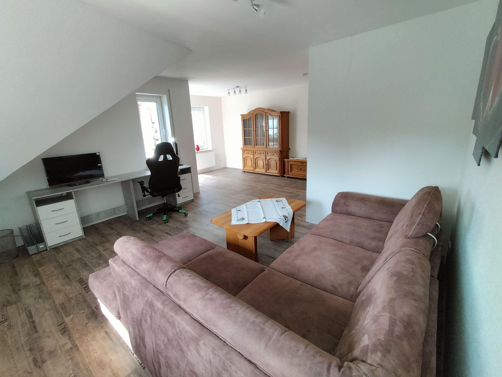 Oberwohnung mit Platz für bis zu vier Personen. In der Wohnung befinden sich ein Schlafzimmer mit einem Doppelbett und ein weiteres Schlafzimmer mit franz. Bett der Größe 140 cm x 200 cm.