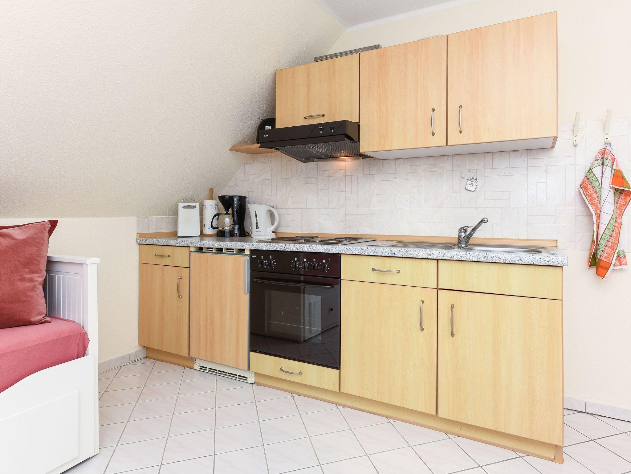 Größe ca.40 Quadratmeter, Wohnraum mit integrierter Küche und mit Schlafmöglichkeit, Schlafzimmer, Badezimmer mit Dusche, Waschtisch und WC, Obergeschoss, Terrasse, optimal für 2 bis 4 Personen und zusätzlich ein Kleinkind.