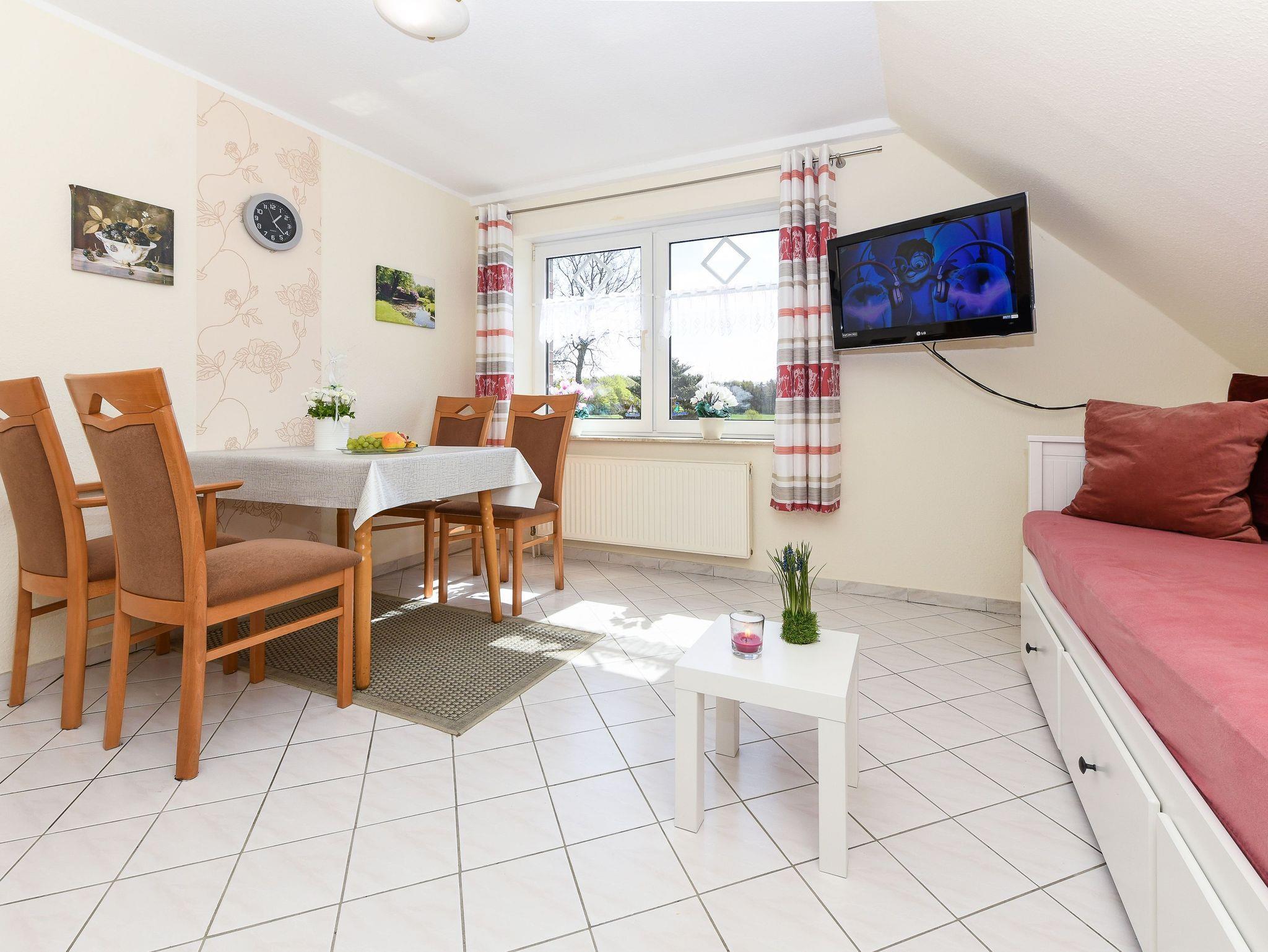 Hier warten vier freundlich eingerichtete und gut ausgestattete, gemütliche Ferienwohnungen auf unsere Gäste und ihre Kinder. Die Wohnungen sind ungefähr 40 bis 55 Quadratmeter groß und bieten genügend Platz für zwei bis fünf Personen oder zwei bis vier Personen nebst zusätzlichem Kleinkind.
