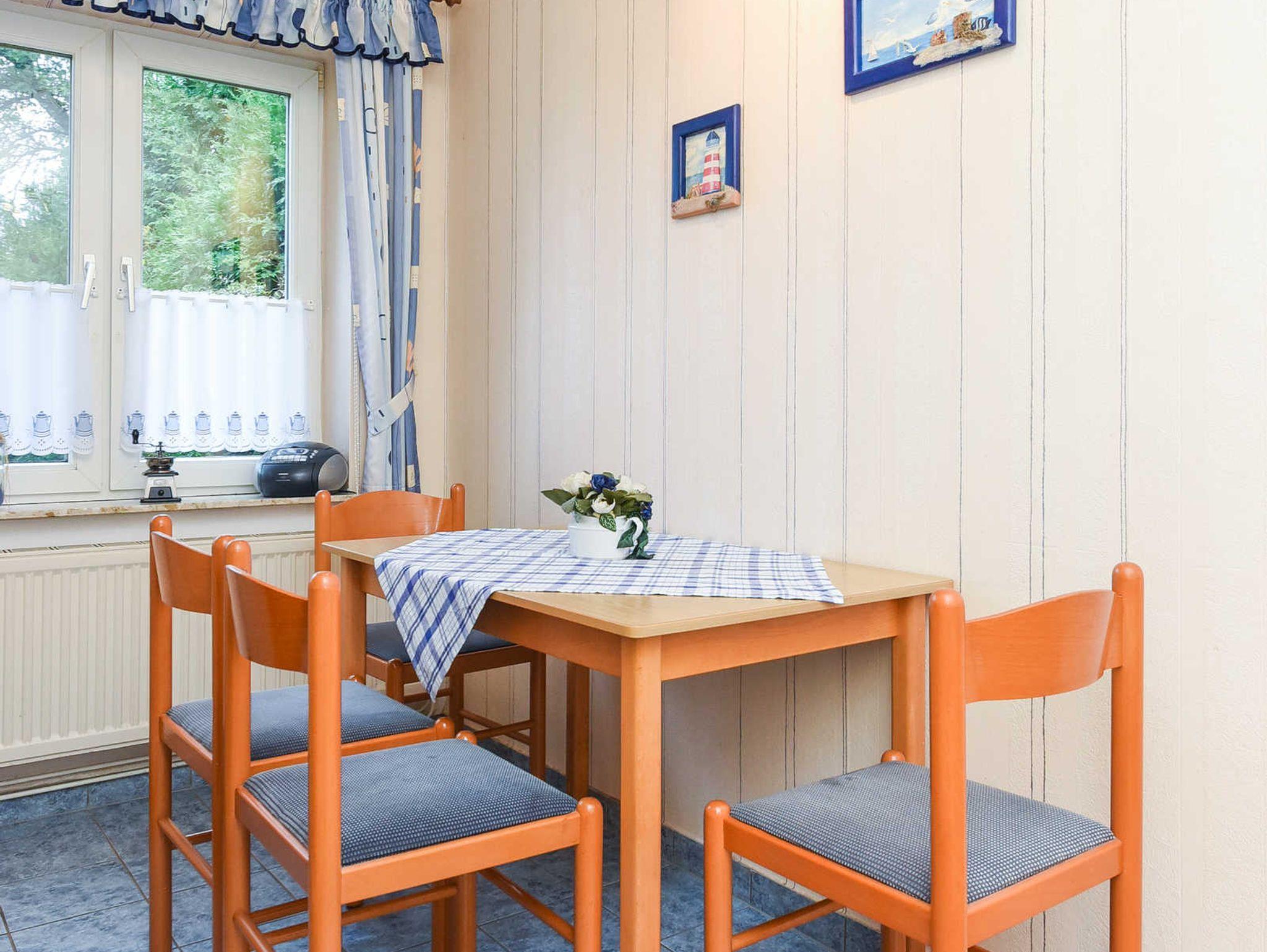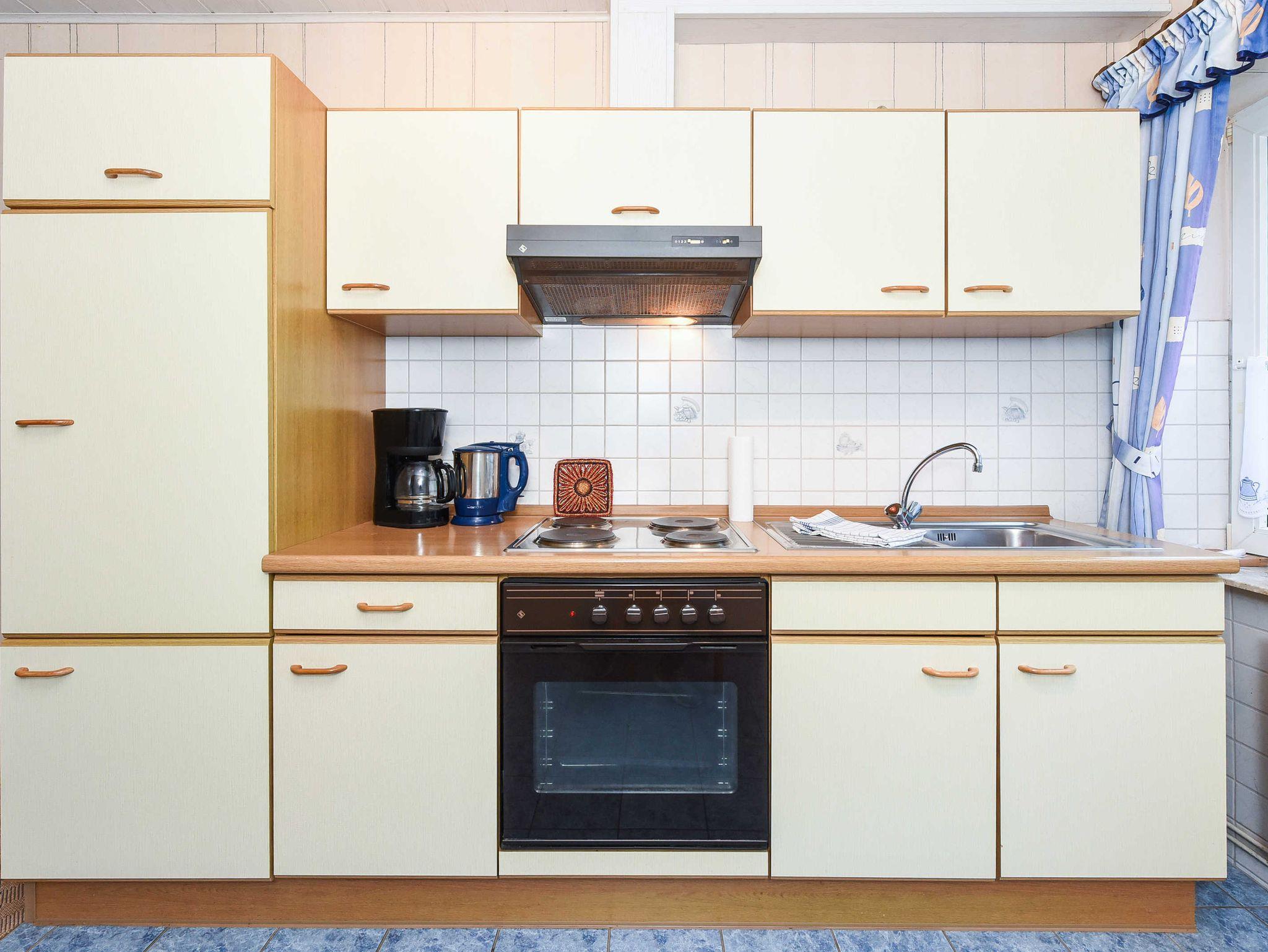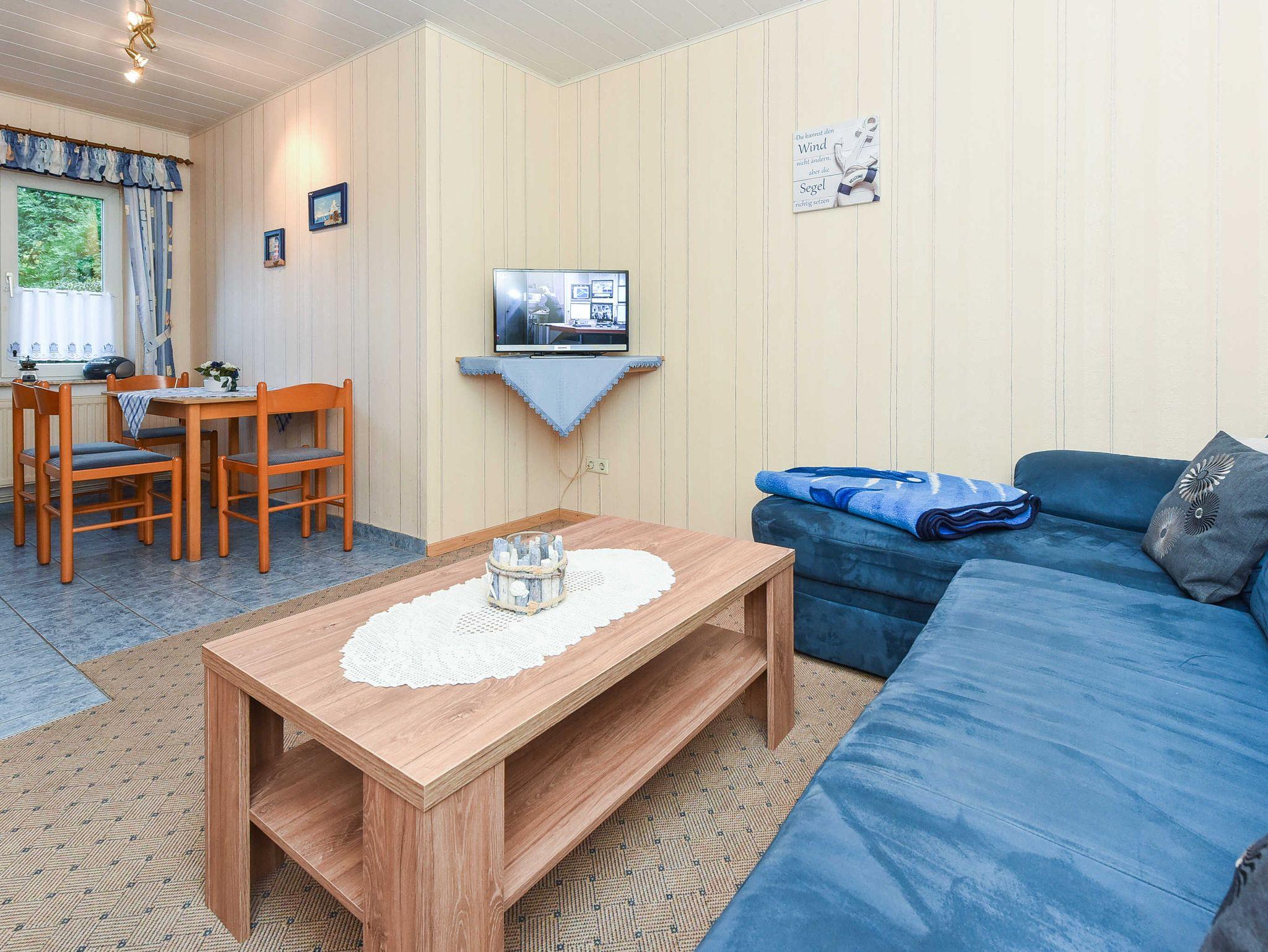 Größe ca. 40 Quadratmeter, Wohnraum mit integrierter Küche, Schlafzimmer, Badezimmer mit Dusche, Waschtisch und WC, Erdgeschoss, Terrasse, optimal für 2 bis 3 Personen.