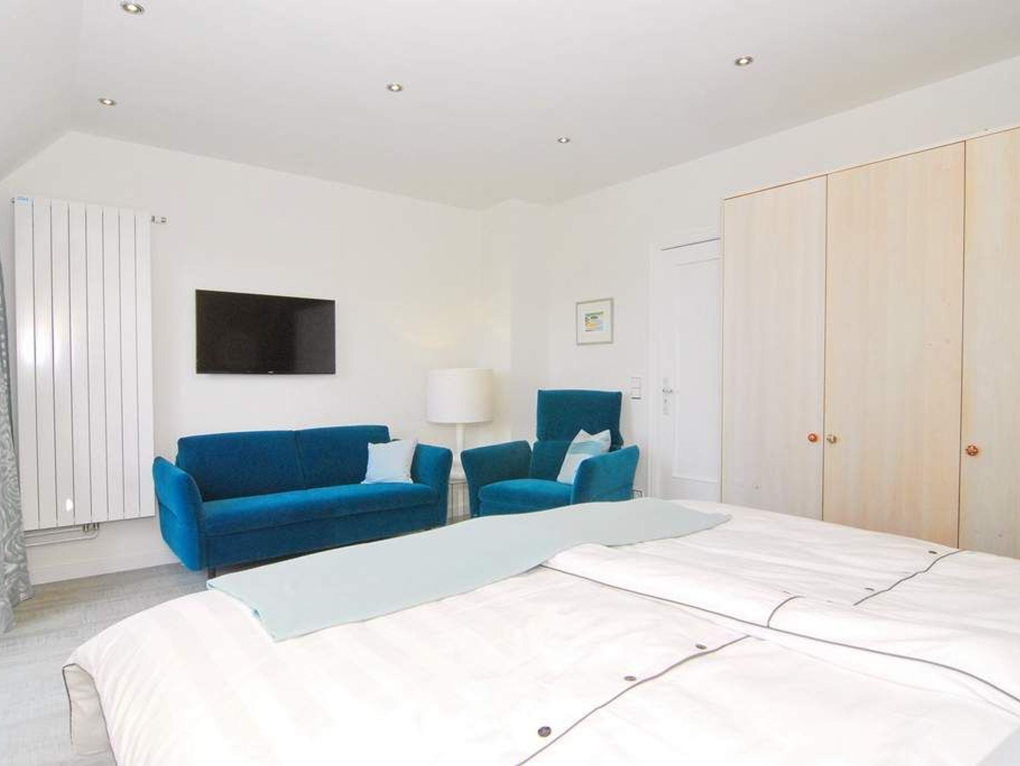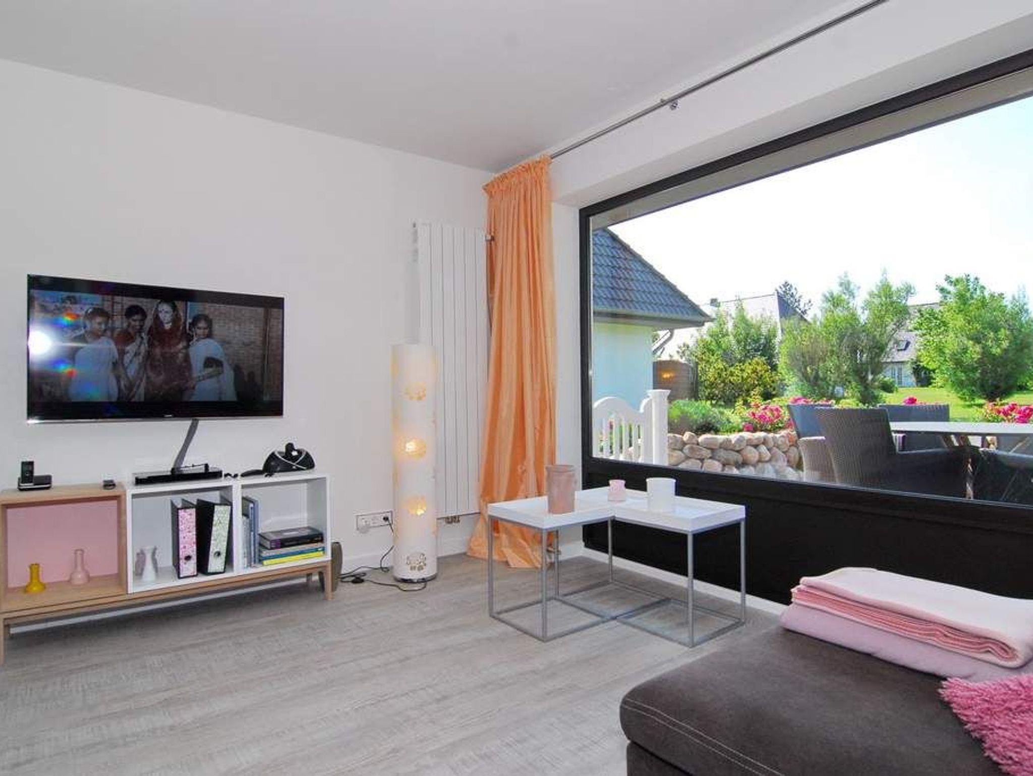 Exklusives Endhausteil, ca. 95 m², Nichtraucher. EG: Wohnzimmer Sofaecke und Essplatz, Kamin-Ofen, Flat-TV, Stereoanlage, DVD, W-LAN vorhanden, Südterrasse mit Gartenmöbel und Markise, offene Küche mit Geschirrspüler, Backofen und Mikrowelle, Duschbad/WC mit Waschmaschine mit Trockner, Abstellraum. OG: kleines Schlafzimmer mit Doppelbett 160x200 und Einbauschrank und kleinem Flat-TV, großes Schlafzimmer mit Doppelbett (200x200), Flat-TV, Sofa, Sessel und Südbalkon, Duschbad/WC. DG mit Doppelbett (160x200 ) an der Schräge und Flat-TV. Tierhaltung ist nicht gestattet. PKW-Stellplatz am Haus. Bettwäsche und Handtücher sind zur Anreise aufgezogen.