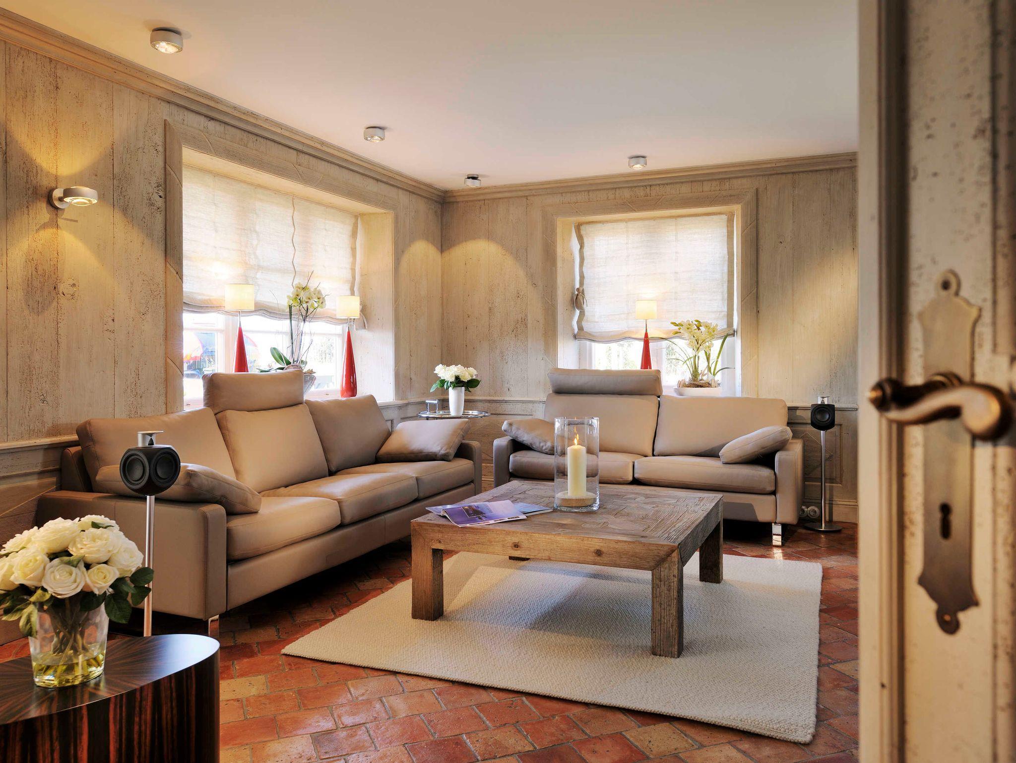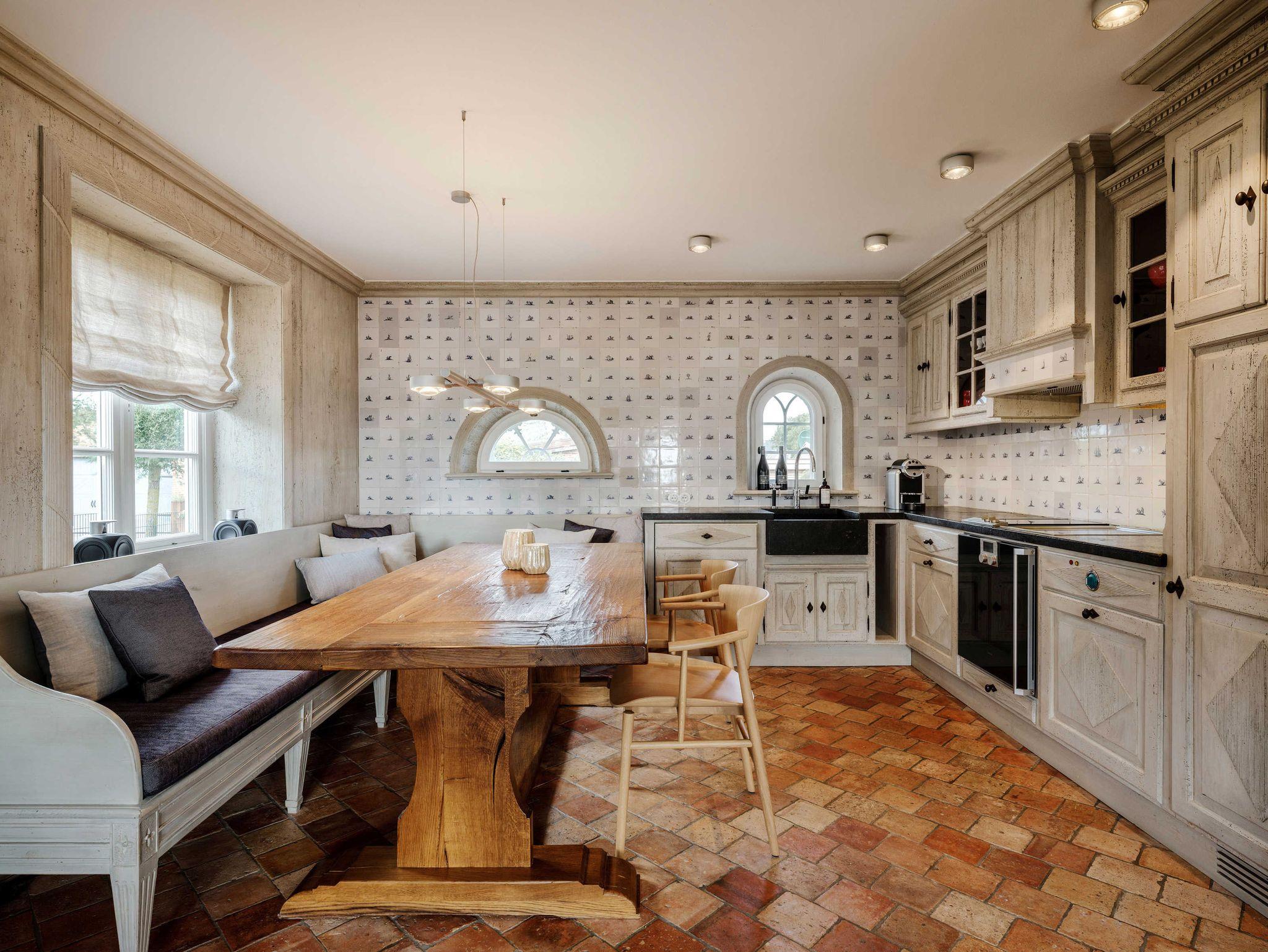 Der offene Wohnraum erstreckt sich von einer Gaggenau-Landhausküche mit Miele-Geräten, Weinklimaschrank, Nespresso-Kaffeemaschine mit Tabs-unlimited, Ronnefeld-Teebox. Mineralwasser stellen wir für Sie unlimited zur Verfügung. Essecke mit einer Holztafel, Sitzbank, gemütlichen Kissen und Eames Chair Stühlen und Poet-Sound Anlage.