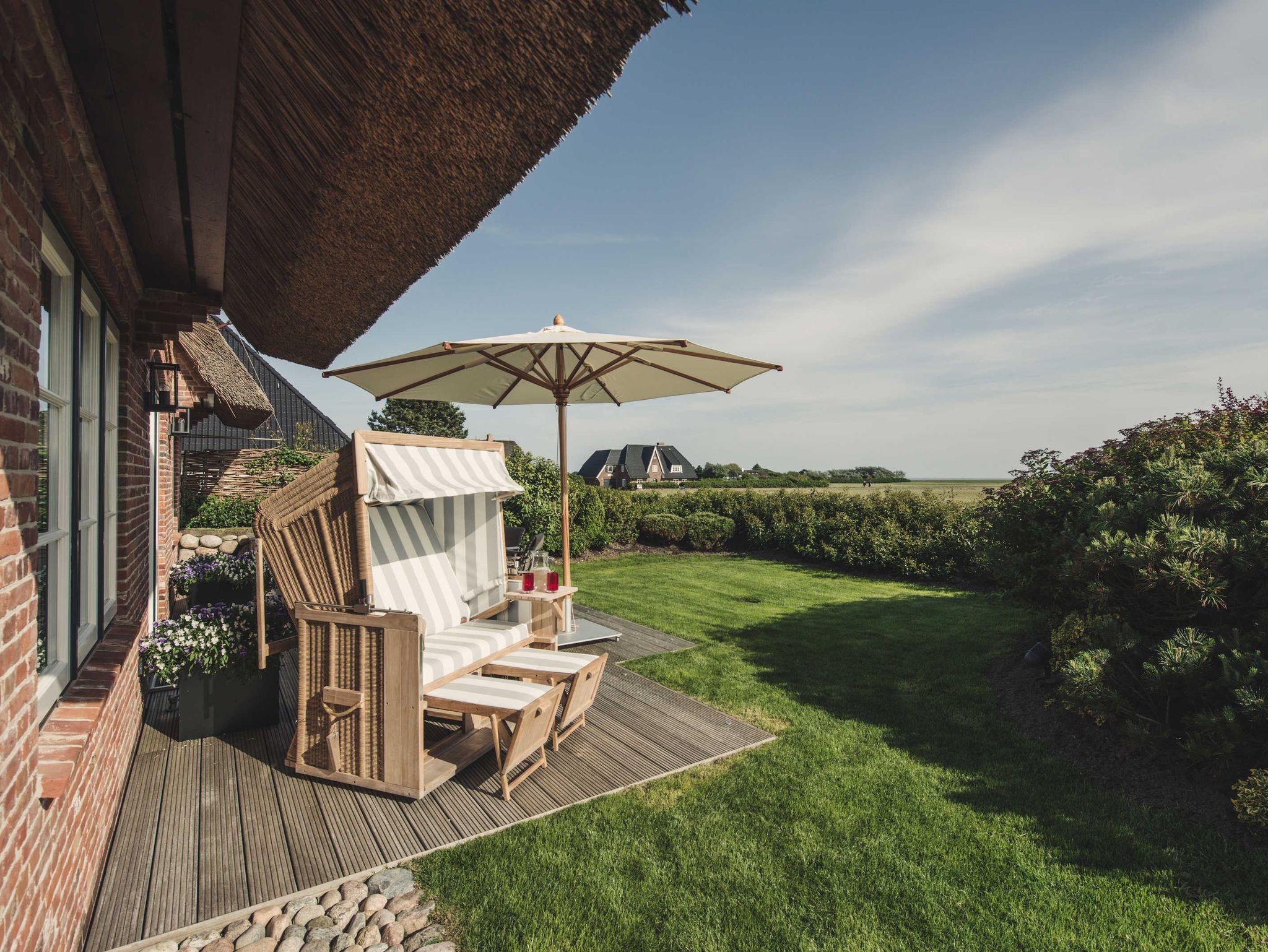 Großzügigkeit ist das Erste, was einem auffällt, wenn man dieses Ferienhaus kennenlernt. Ein weitläufiges Grundstück von 1000 Quadratmetern mit dem äußerst exklusiv eingerichteten reetgedeckten Ferienhaus im beschaulichen Morsum in absoluter Ruhiglage. Am Ende einer Sackgasse.
