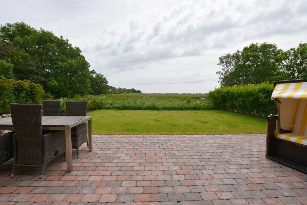 Die moderne Doppelhaushälfte in Morsum mit erstklassiger Ausstattung und hochwertiger Einrichtung ist nach Süden ausgerichtet und offenbaren einen unverbaubaren Blick über Wiesen und Felder.