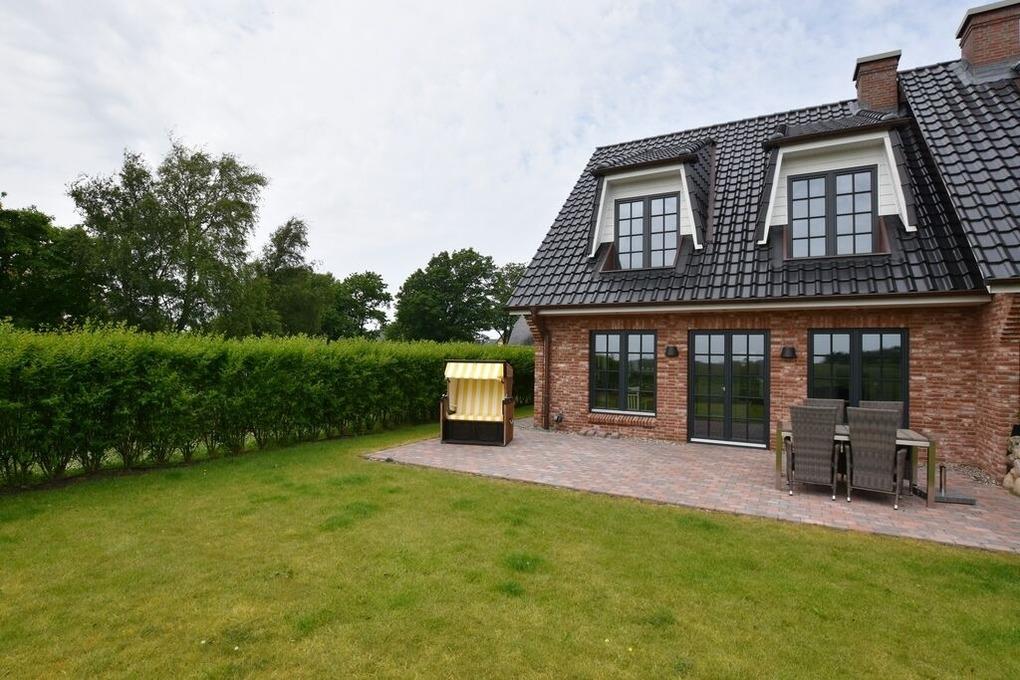 Moderne Doppelhaushälfte in Morsum mit Kamin, Sauna und herrlichem Blick über Wiesen und Felder.