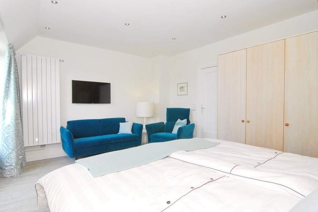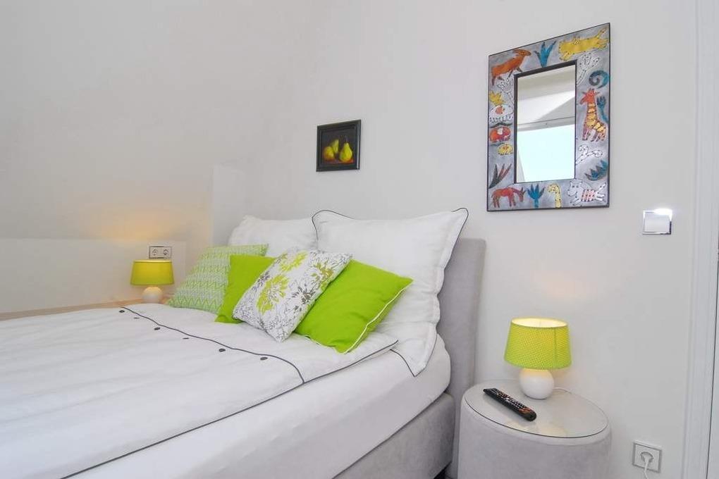 Exklusives Endhausteil, ca. 95 m², "Nichtraucher". EG: Wohnzimmer Sofaecke und Essplatz, Kamin-Ofen, Flat-TV, Stereoanlage, DVD, W-LAN vorhanden, Südterrasse mit Gartenmöbel und Markise, offene Küche mit Geschirrspüler, Backofen und Mikrowelle, Duschbad/WC mit Waschmaschine mit Trockner, Abstellraum. OG: kleines Schlafzimmer mit Doppelbett 160x200 und Einbauschrank und kleinem Flat-TV, großes Schlafzimmer mit Doppelbett (200x200), Flat-TV, Sofa, Sessel und Südbalkon, Duschbad/WC. DG mit Doppelbett (160x200 ) an der Schräge und Flat-TV. Tierhaltung ist nicht gestattet. PKW-Stellplatz am Haus. Bettwäsche und Handtücher sind zur Anreise aufgezogen.