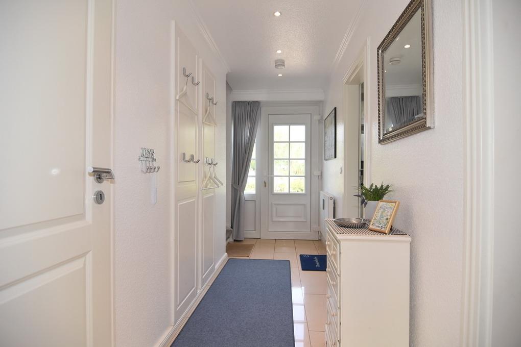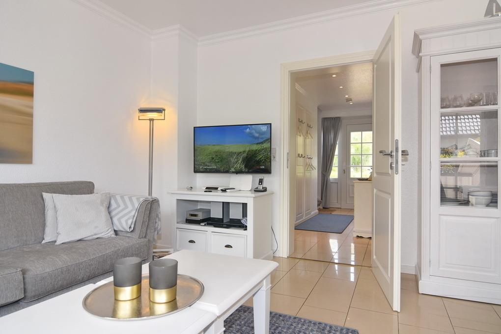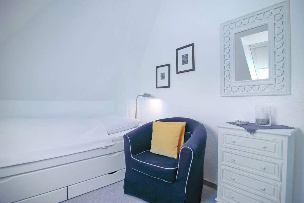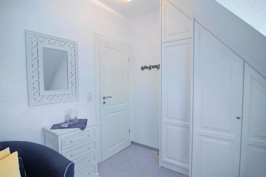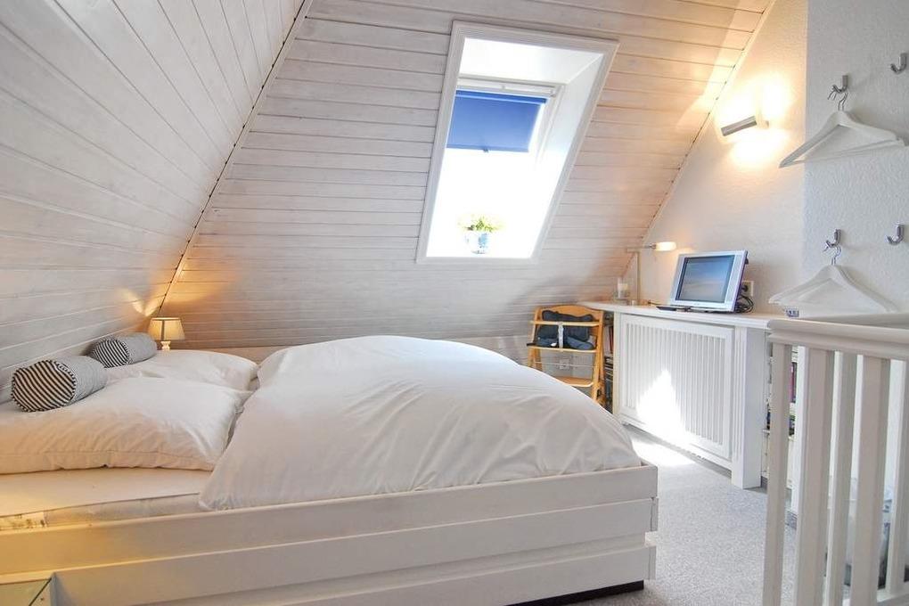 Exklusives Endhausteil, ca. 95 m², Nichtraucher. EG: Wohnzimmer mit zwei 2 Sitzer-Couchen und Essplatz, TV, Stereoanlage, DVD, Internet (ohne Gewähr), Südterrasse mit Strandkorb und Gartenmöbel, separate Küche mit Geschirrspüler, Backofen mit Dampfgarer, kleiner Gefrierschank, Duschbad/WC, Abstellraum mit Waschmaschine und Trockner, EG ist komplett gefliest. OG: kleines Schlafzimmer mit Einzelbett (100x200) und Sessel, großes Schlafzimmer mit Doppelbett (180x200), TV, Sessel und Südbalkon, Vollbad/WC, offenes DG mit Doppelbett (160x200) an der Schräge und Sessel. Tierhaltung ist nicht gestattet. PKW-Stellplatz am Haus. PKW-Stellplatz am Haus. Bettwäsche und Handtücher sind zur Anreise aufgezogen. Kinderreisebett und Hochstuhl befinden sich im Dachgeschoss.