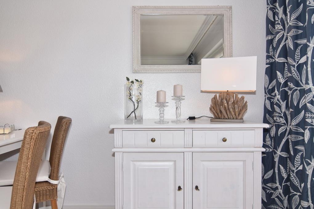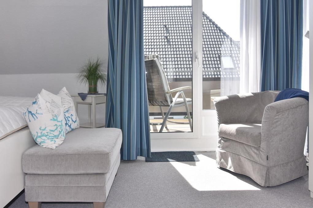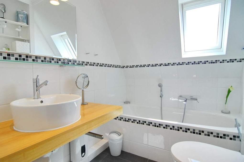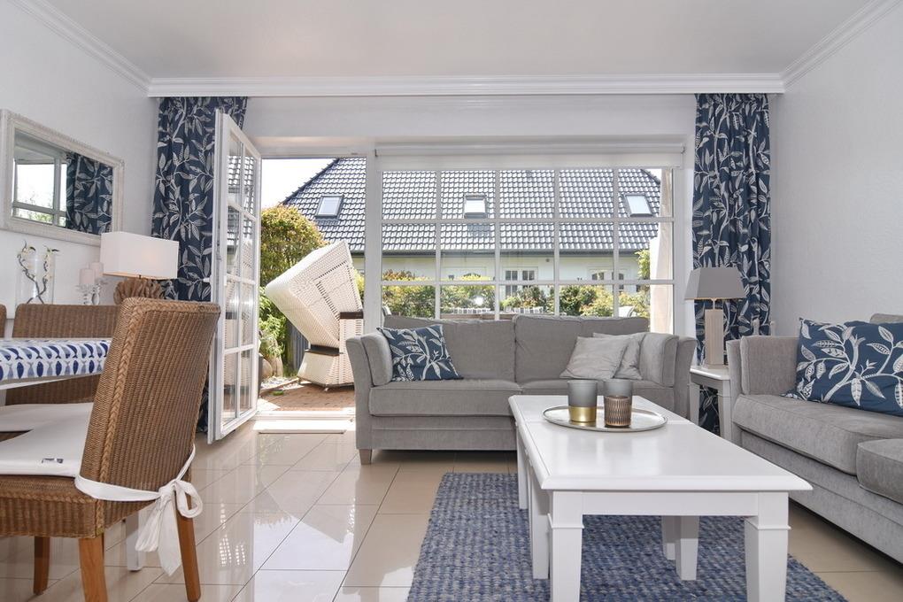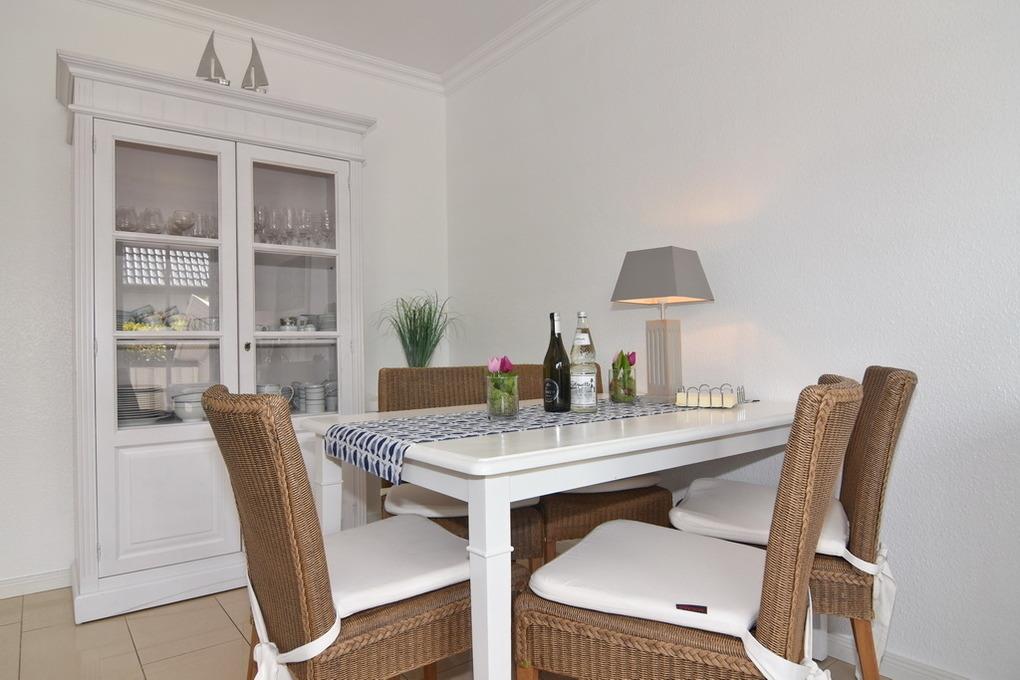 Exklusives Endhausteil, ca. 95 m², Nichtraucher. EG: Wohnzimmer mit zwei 2 Sitzer-Couchen und Essplatz, TV, Stereoanlage, DVD, Internet (ohne Gewähr), Südterrasse mit Strandkorb und Gartenmöbel, separate Küche mit Geschirrspüler, Backofen mit Dampfgarer, kleiner Gefrierschank, Duschbad/WC, Abstellraum mit Waschmaschine und Trockner, EG ist komplett gefliest. OG: kleines Schlafzimmer mit Einzelbett (100x200) und Sessel, großes Schlafzimmer mit Doppelbett (180x200), TV, Sessel und Südbalkon, Vollbad/WC, offenes DG mit Doppelbett (160x200) an der Schräge und Sessel. Tierhaltung ist nicht gestattet. PKW-Stellplatz am Haus. PKW-Stellplatz am Haus. Bettwäsche und Handtücher sind zur Anreise aufgezogen. Kinderreisebett und Hochstuhl befinden sich im Dachgeschoss.