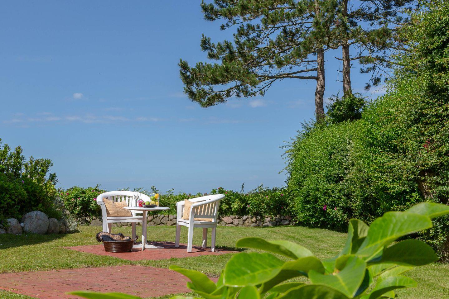 Sie können hier wunderbar Ferien machen wegen des großen Grundstücks und der geschützten breiten Terrasse. Sie können hier vom feinsten urlauben, weil einfach alles da ist, was man braucht, wenn man gern etwas mehr und etwas Meer hat. Sie können hier aber auch den Alltag komplett vergessen, weil dieses Appartement etwas Außergewöhnliches mutig vereint.