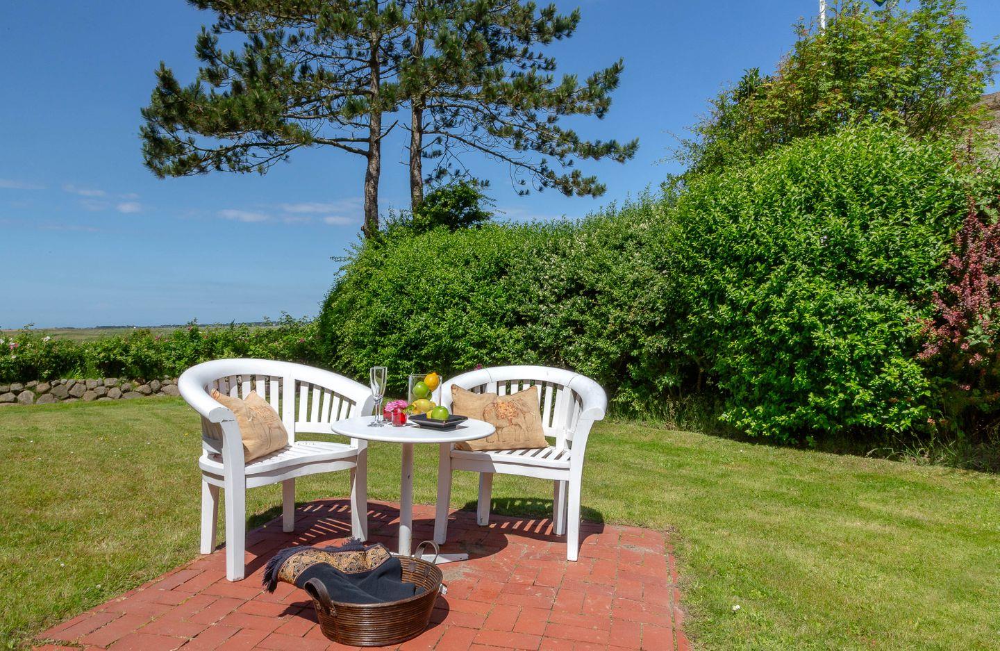 Das alles fügt sich zu einem reizvollen Mix zusammen, im luxuriösen Verbund mit einer üppigen Vollausstattung, zu der auch eine Landhausküche gehört. Die Terrasse des Hauses mit schönem Blick auf das Wattenmeer lädt mit eigenem Strandkorb, bequemen Stühlen und großem Garten zum Entspannen ein. Exotisch und doch auch friesisch kommt sie daher, die Wohnung, die genau das Richtige ist für Mutige und Wattliebhaber.