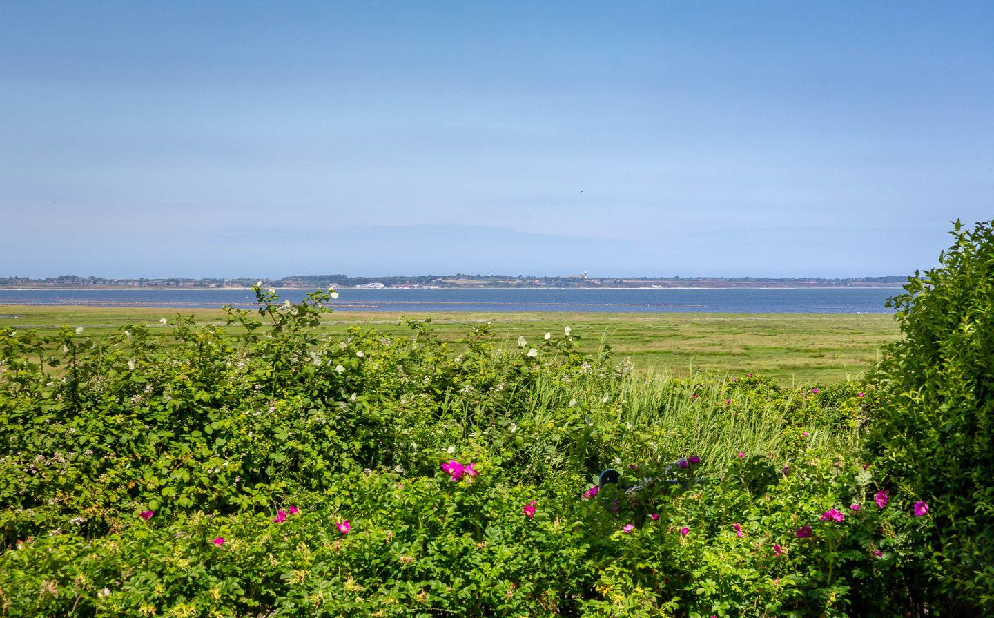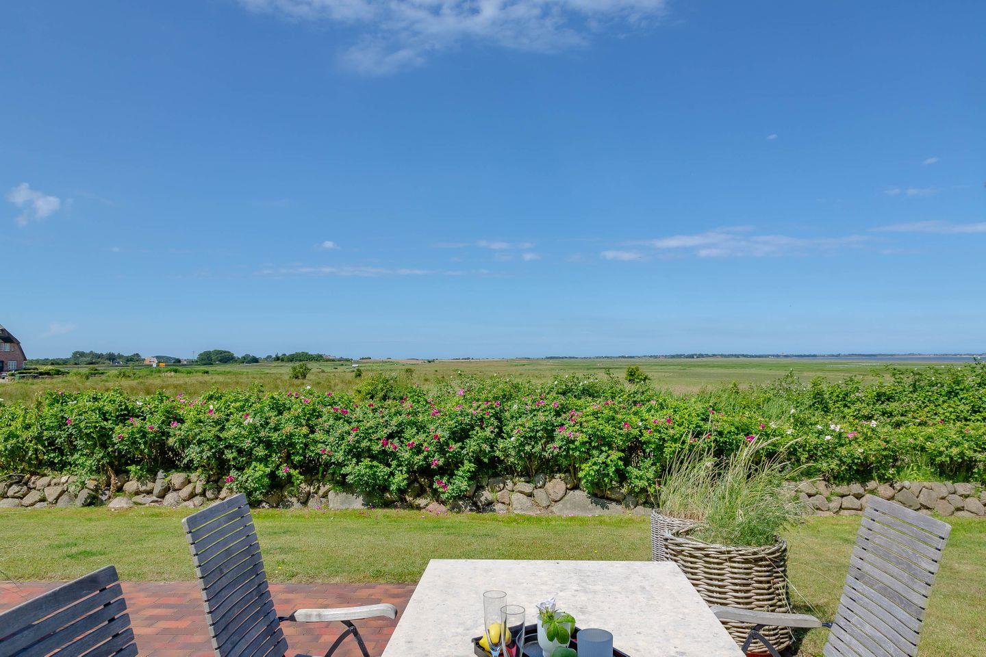 Sie können natürlich hier wohnen wegen der besonderen Lage. Ganz am Ende des Dorfes, sehr für sich, nur noch ein reetgedecktes Friesenhaus nebenan, mit großartigem Blick auf das weite Wattenmeer.
