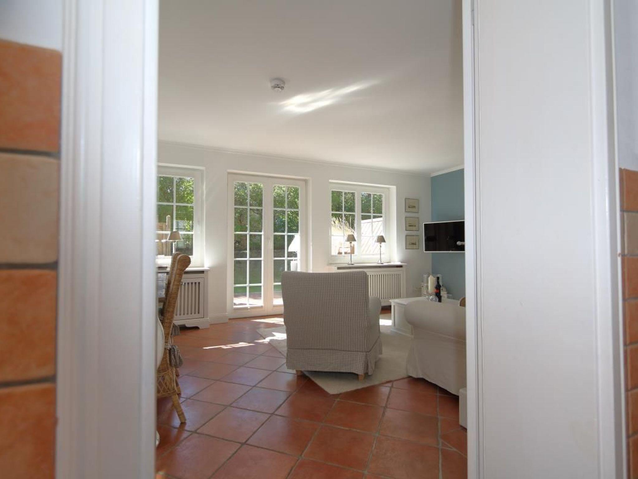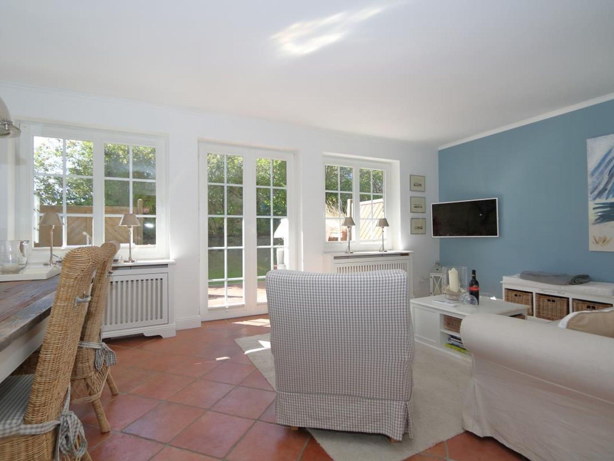 Es erwartet Sie ein hochwertiges, von einer bekannten Sylter Familie eingerichtetes Appartement, welches für Sie Ihr Sylter Zuhause werden kann. Sie wohnen nur 7 Gehminuten vom Wattenmeer und vom Munkmarscher Yachthafen entfernt. Von hier aus lassen sich alle Sylt-Aktivitäten problemlos, ob per Bus, per Rad, per PKW oder zu Fuß, erreichen. Und vor allem werden Sie immer wieder gerne hierher zurückkehren, um auf der großzügigen Sonnenterrasse von Blumen umgeben im Strandkorb oder auf der Friesenbank zu relaxen. Die exklusive Gestalltung im Landhausstil setzt sich von außen nach innen durch eine betont sensible Farbgebung, zahlreiche Tischlereinbauten, teilw. Designermöbel und der Liebe zum Detail konsequent fort. Der Soutterrain-Bereich ist schön eingerichtet mit drei Schlafzimmern und einem Badezimmer.