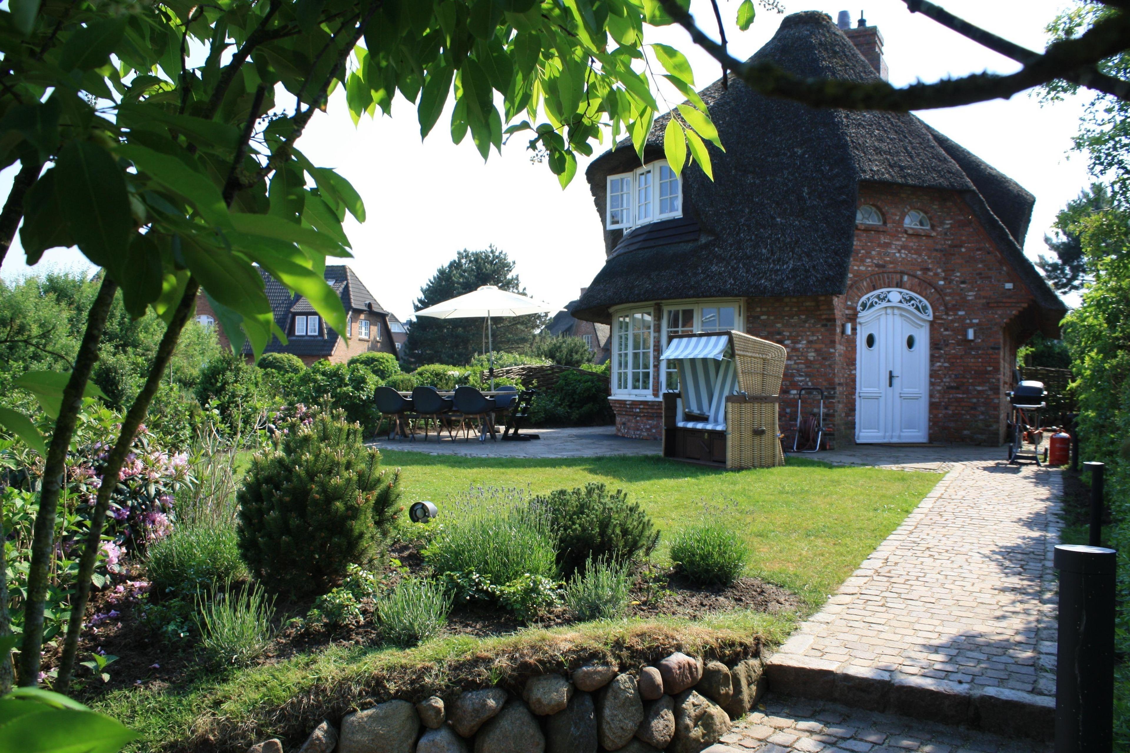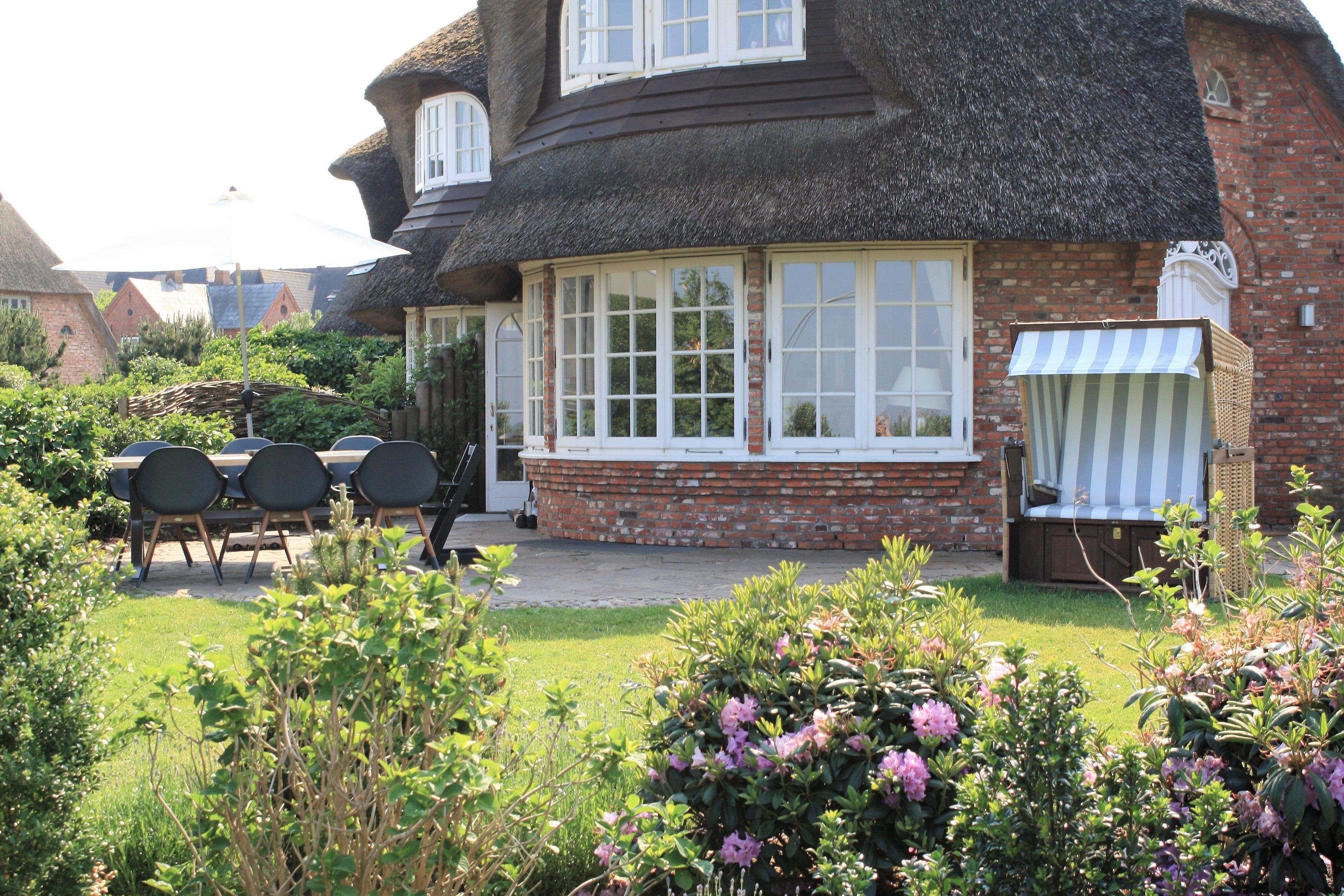 Gehobenes Reetdachhaus mit Meerblick in Munkmarsch, nahe weißem Sandstrand und Yachthafen.