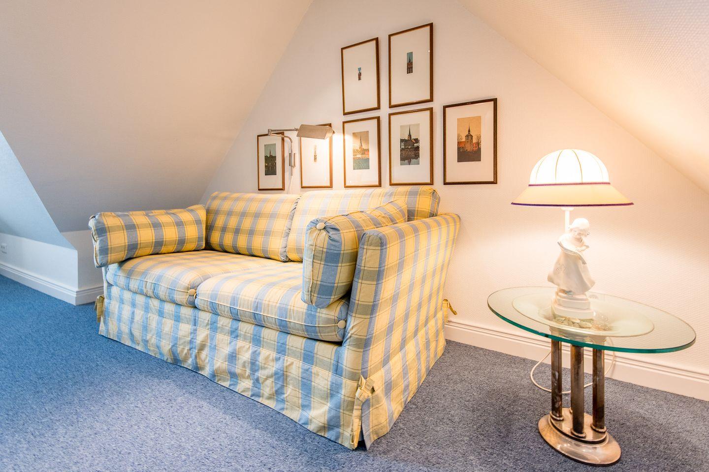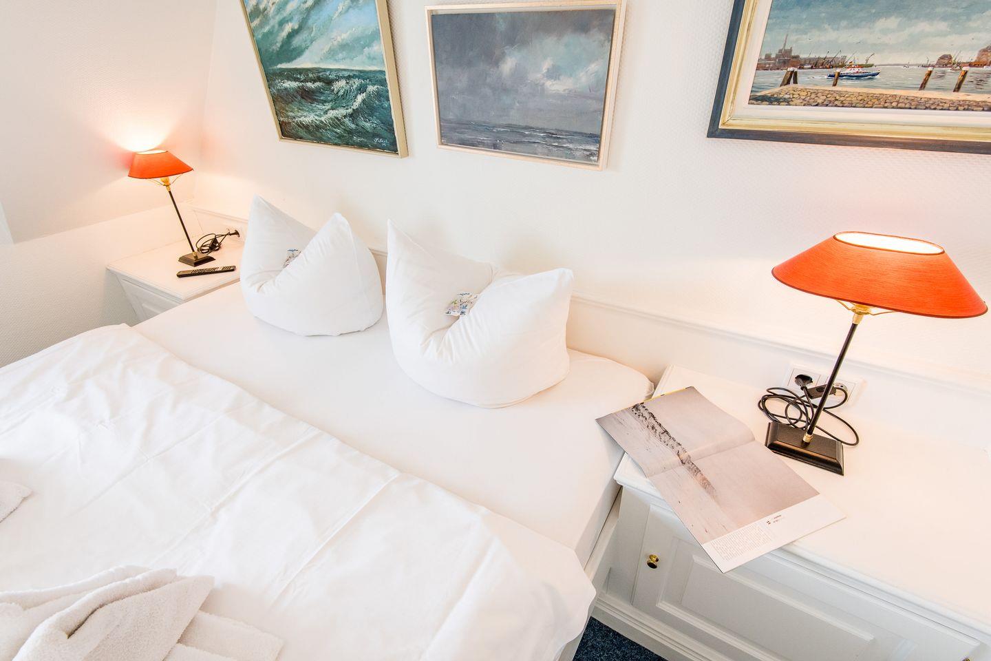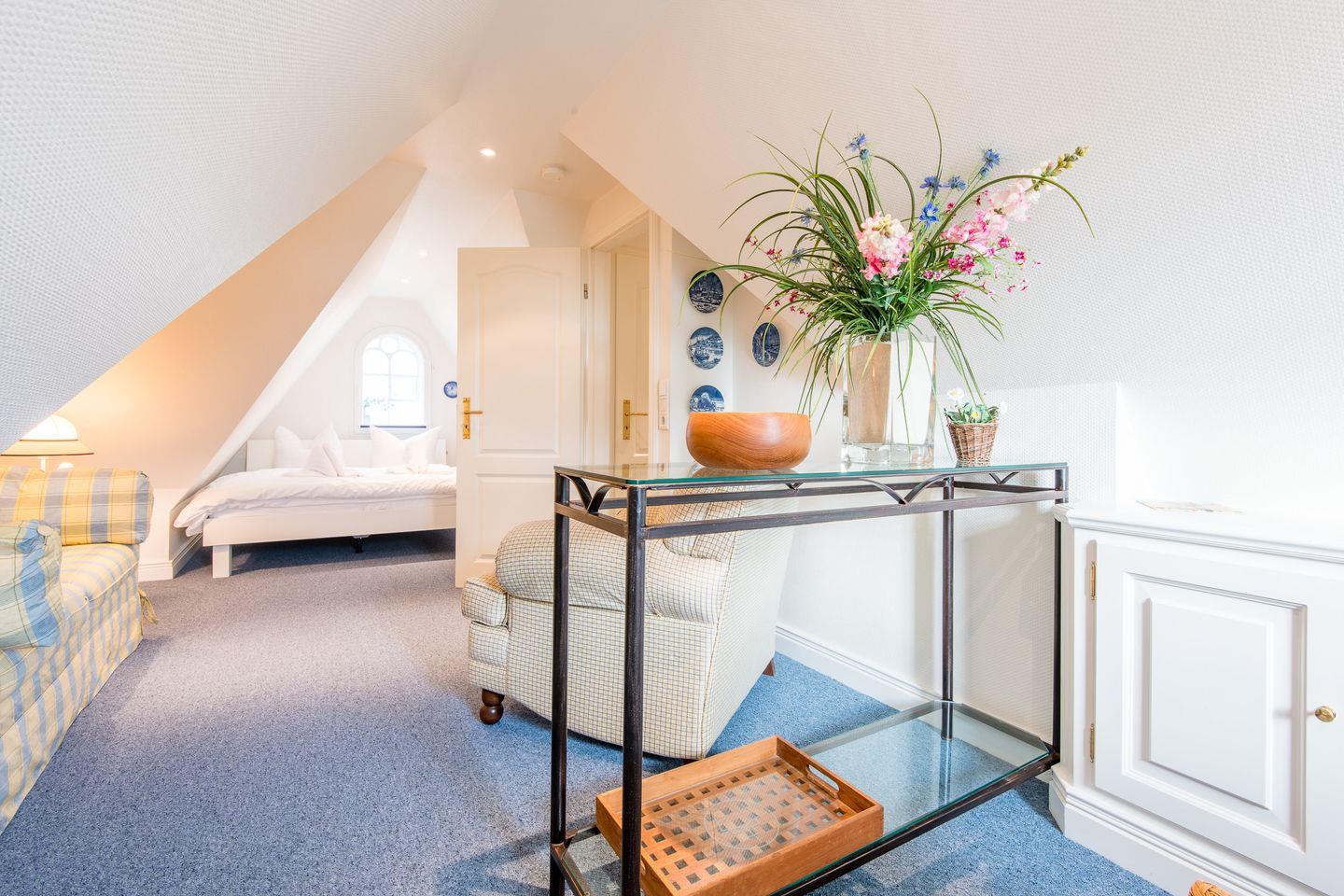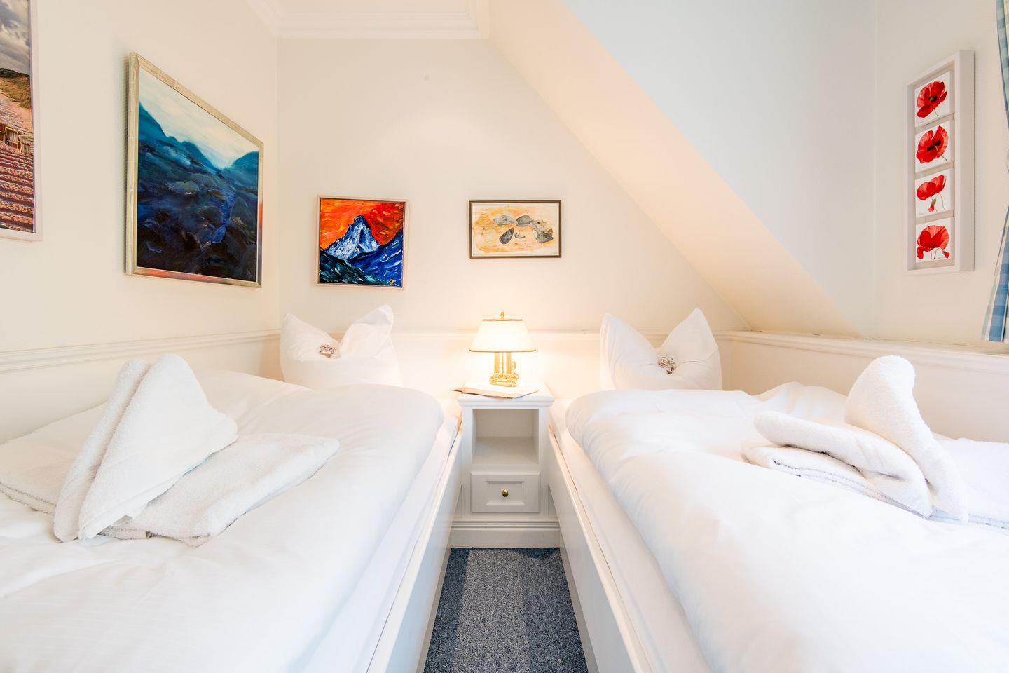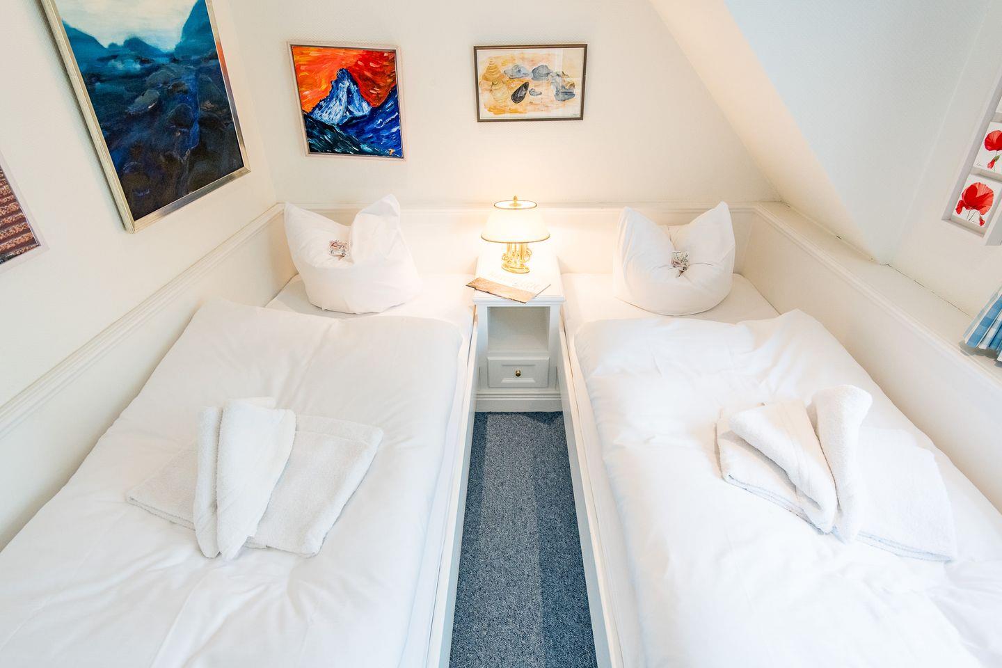 Die drei komfortabel eingerichteten Schlafzimmer dieses Mittelreihenhauses bieten den perfekten Rückzugsort für erholsame Nächte und entspannte Urlaubstage. Das erste Schlafzimmer ist mit einem großzügigen Doppelbett (2x 90x200 cm) ausgestattet und bietet durch praktische Einbauschränke viel Stauraum für ein aufgeräumtes Ambiente. Auch im zweiten Schlafzimmer lädt ein Doppelbett (2x 90x200 cm) zum Abschalten und Entspannen ein. Im gemütlichen Dachgeschosses befindet sich das dritte Schlafzimmer, ebenfalls mit einem komfortablen Doppelbett (2x 80x200 cm) versehen.
