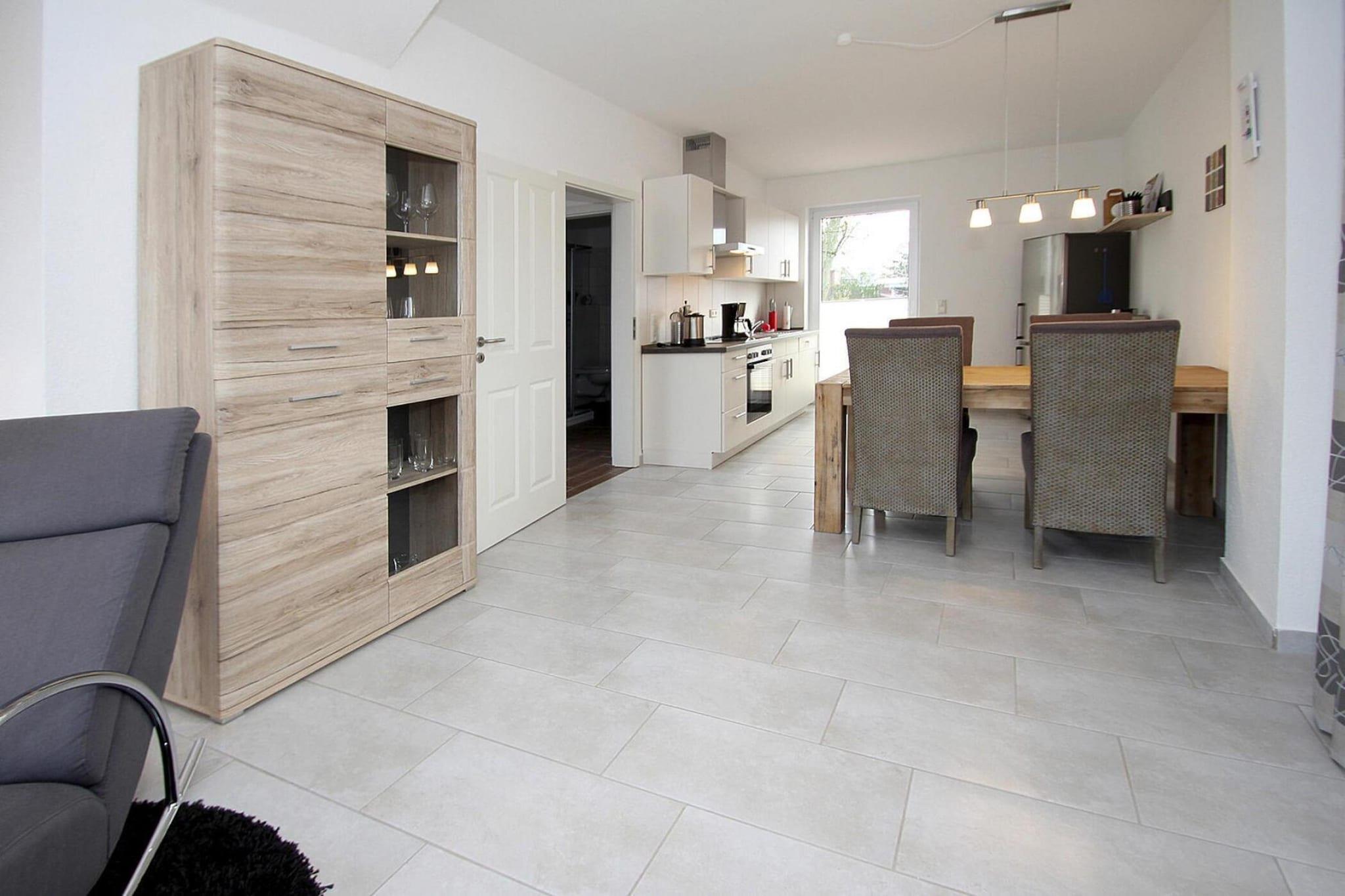 Erst kürzlich fertiggestelltes und hervorragend ausgestattetes Friesenhaus, in dem Sie sich wie zuhause fühlen werden. Das lichtdurchflutete Haus ist mit viel Liebe zum Detail eingerichtet und verfügt neben einem hübschen Garten auch über zwei Terrassen, so dass Sie den ganzen Tag die Sonne genießen können. Das kleine Sieldorf mit rot gedeckten Friesenhäusern liegt im Schutz der Deiche und direkt an der Strandstraße zum Meer. Gemütliche Restaurants, die oft regionale Küche mit frischem Fisch anbieten, ein kleiner Supermarkt und eine Bäckerei sorgen für das leibliche Wohl. Nicht weit ist es bis zum Sandstrand und zum Hafen, von wo aus Sie zu einem Ausflug in das Watt starten oder es sich im Strandkorb beim Nichtstun gemütlich machen können. Aktivitäten in der Nähe: Die Umgebung ist wie gemacht für lange Spaziergänge oder Radtouren auf dem Deich. Natürlich gehört auch eine Bootstour zu Ihrem Nordseeurlaub unbedingt dazu. Wenn Sie nicht zum Hochseeangeln (ab Dornumersiel, etwa acht Kilometer) aufbrechen möchten, können Sie stattdessen einen Tagesausflug hinüber zur Insel Baltrum unternehmen. Oder Sie unternehmen eine Paddeltour auf dem Harketief, einem kleinen Fluss ganz in der Nähe. An Tagen mit norddeutschem Schietwetter bietet ein Abstecher zum Indoor-Spielpark Sturmfrei viel Abwechslung für Familien mit Kindern. Erwachsene bevorzugen die Wellnessoase, die neben verschiedenen Saunen auch entspannende Massagen im Angebot hat.