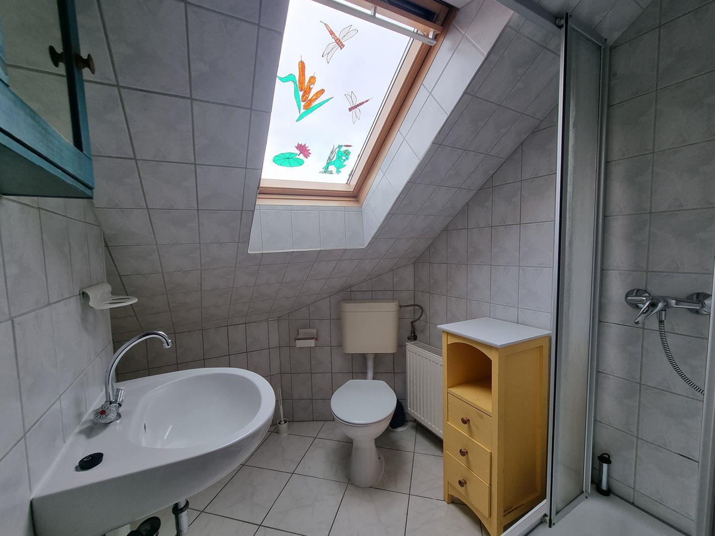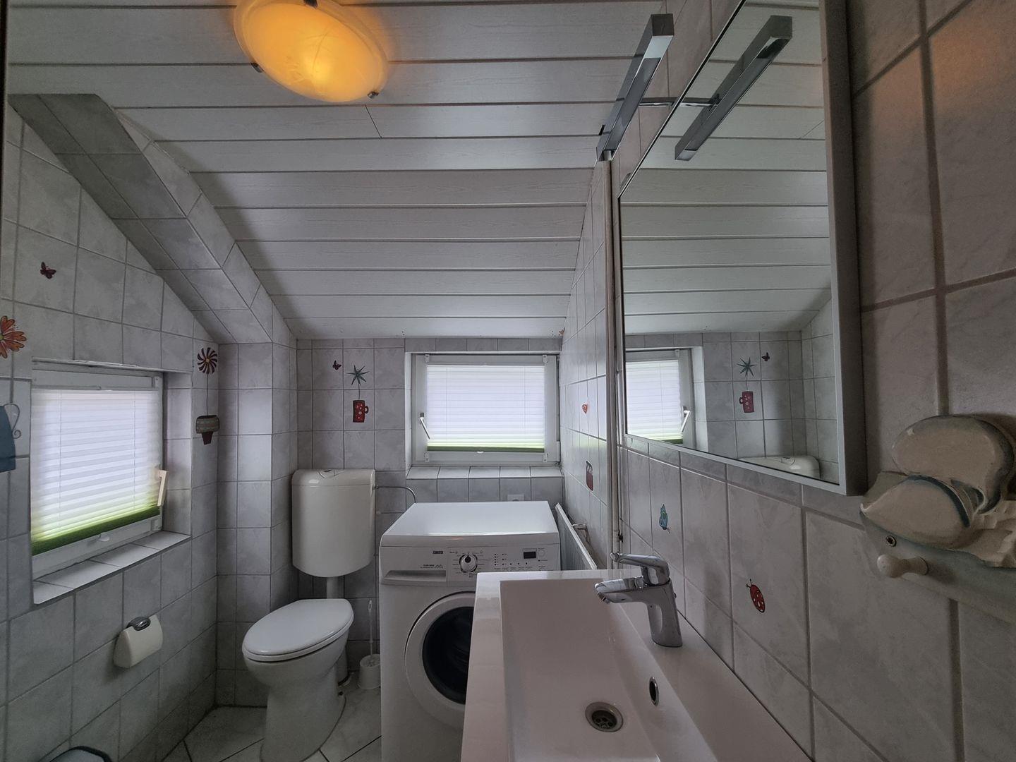 Das Duschbad ist zusätzlich mit einer Waschmaschine ausgestattet.