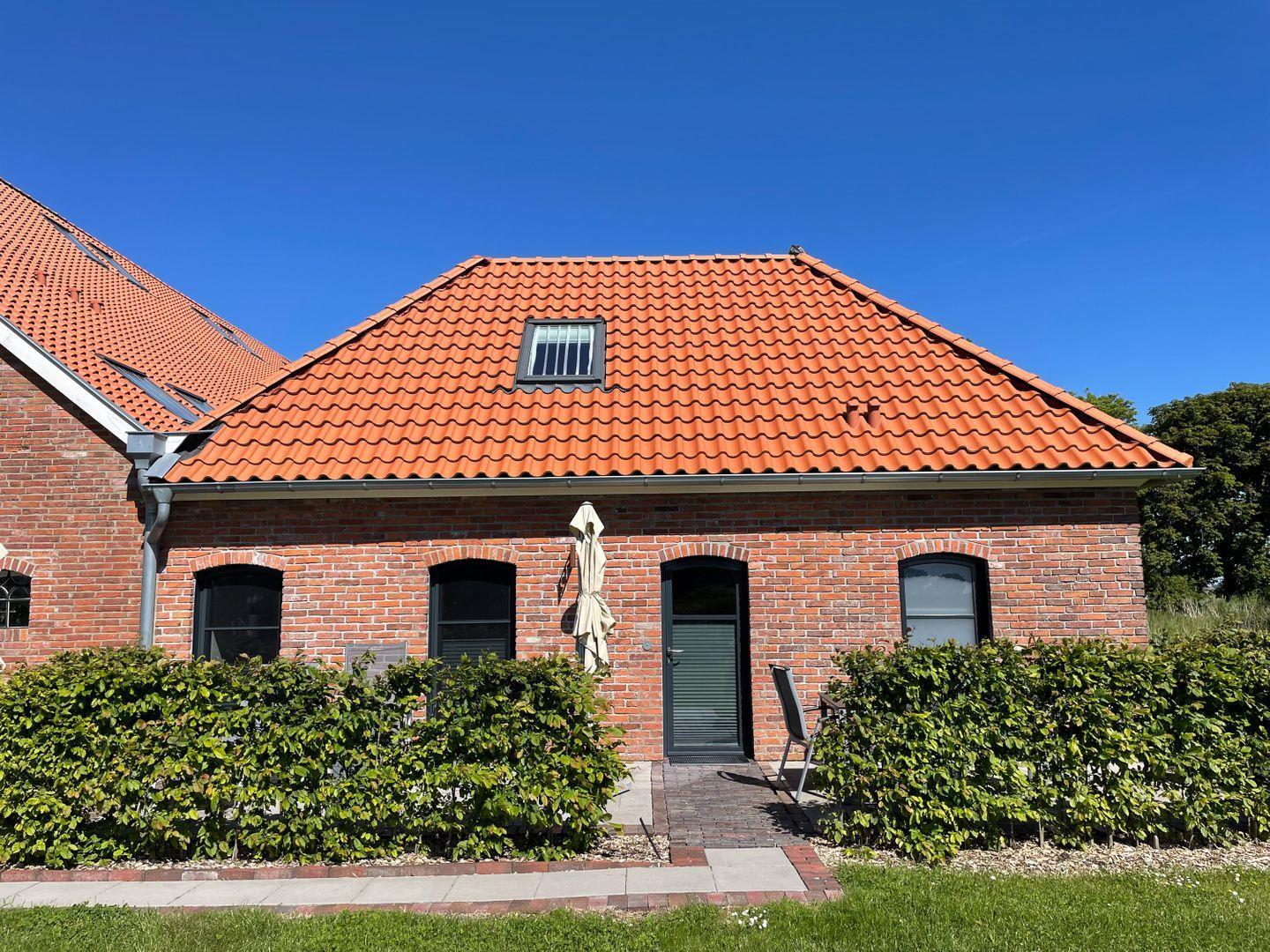 Erleben Sie entspannte Tage in der charmanten Ferienwohnung Gulfhof Dreybült in Neßmersiel mit Terrasse und Garten.