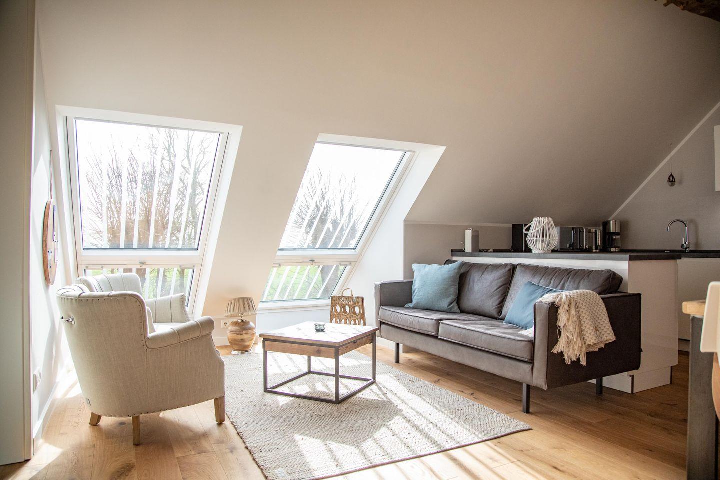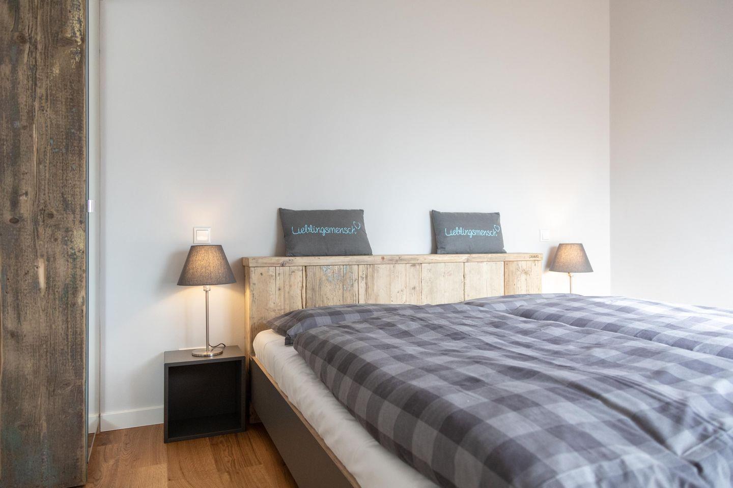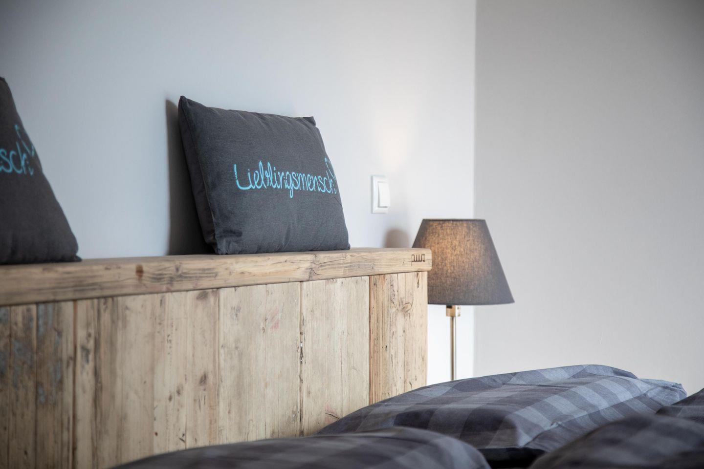 Der Clou an der Ferienwohnung Tammo sind die Fenster im Wohn- und Schlafzimmer, die sich beim Öffnen in einen kleinen Balkon verwandeln. Den Mittelpunkt der Wohnung bildet der offene Wohn-, Ess- und Küchenbereich. Luftig und zugleich urgemütlich lädt er zum Verweilen mit der ganzen Familie ein. Trefft euch am handgefertigten Esstisch oder zieh dich zum Relaxen mit einem guten Buch oder Musik oder aus der Bose-Soundbar auf die bequeme Ledercouch zurück. In der vollausgestatteten Küche wird das Kochen zu einem geselligen Vergnügen.
