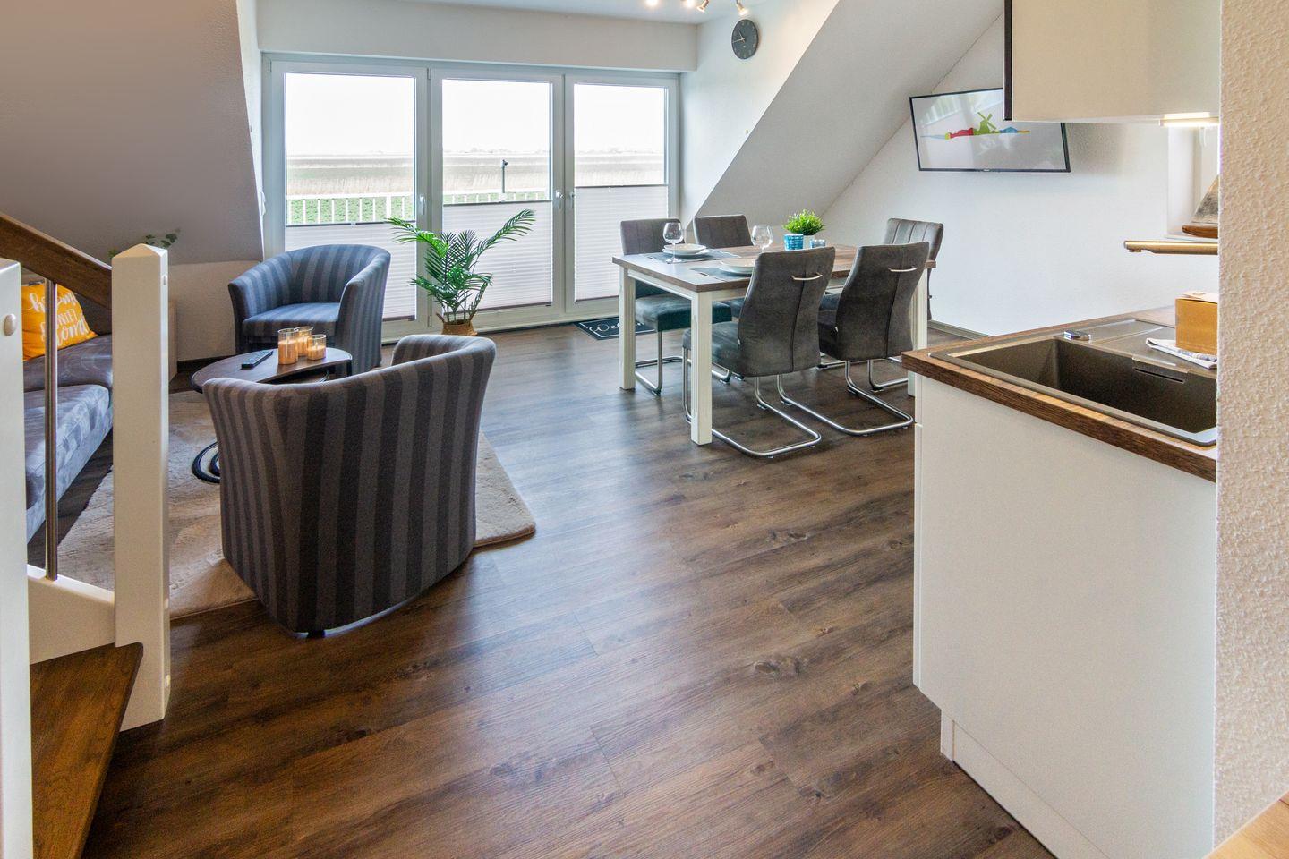 Moderne Ferienwohnung Waterkant in Neßmersiel mit Balkon, WLAN und Strandnähe für Ihren erholsamen Nordseeurlaub.