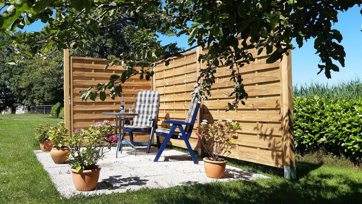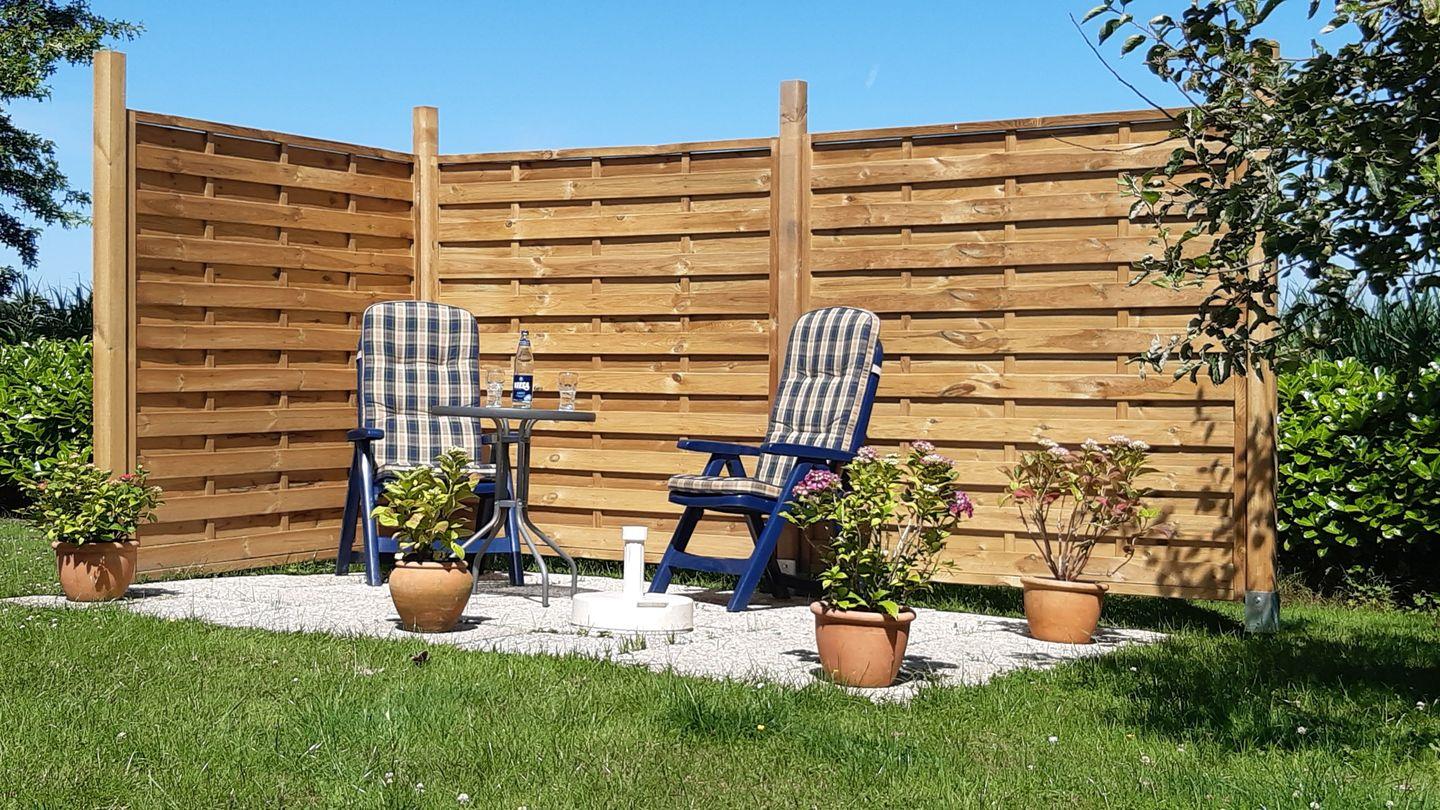 Ein besonderes Highlight: die gemeinschaftliche Sitzmöglichkeit im Garten – perfekt, um die frische Nordseeluft zu genießen, den Blick über die umliegenden Felder schweifen zu lassen und zu entspannen.