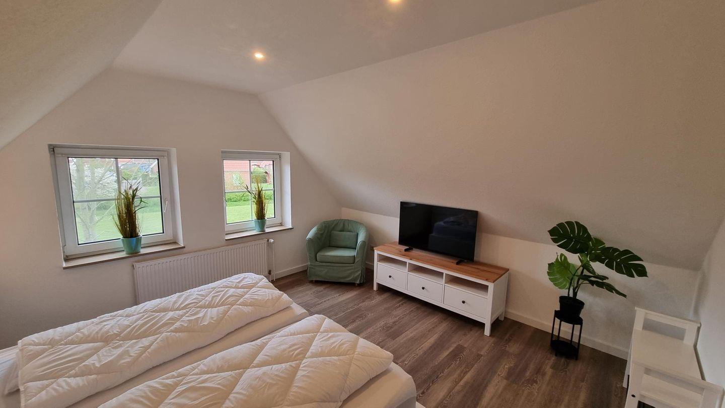 Der Wohnbereich ist freundlich gestaltet und lädt zu erholsamen Stunden nach einem Tag an der frischen Seeluft ein. Die Küche ermöglicht eine unkomplizierte Selbstversorgung während des Aufenthalts. Separate Schlafbereiche sorgen für Rückzugsmöglichkeiten und erholsame Nächte.