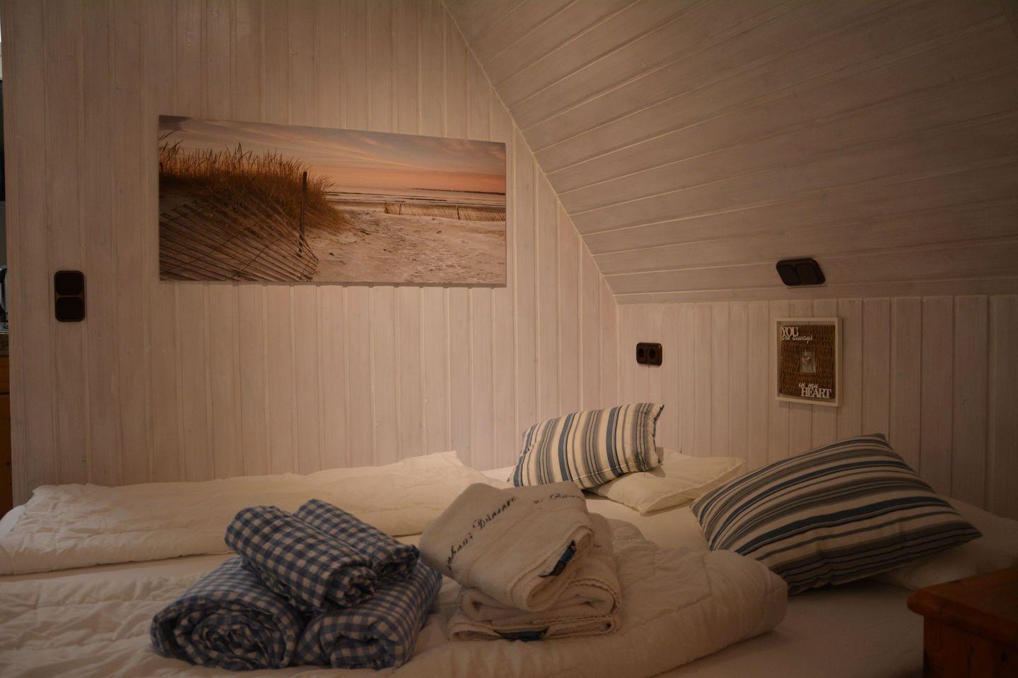 Alle Wohnungen sind in einem harmonischen Mix aus rustikal ländlichen und modern maritimen Elementen gehalten. Sie vermitteln Gemütlichkeit und Wärme gepaart mit Funktionalität . Die weißen Holzvertäfelungen strahlen Helligkeit und Frische aus. Sie schlafen in einem Doppelbett. Die Funktionen Essen und gemütliches Sitzen sind geschickt in dieser kleinen Wohnung aufgeteilt.