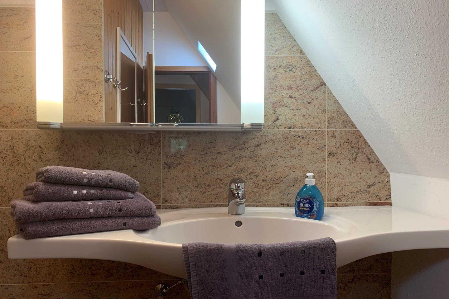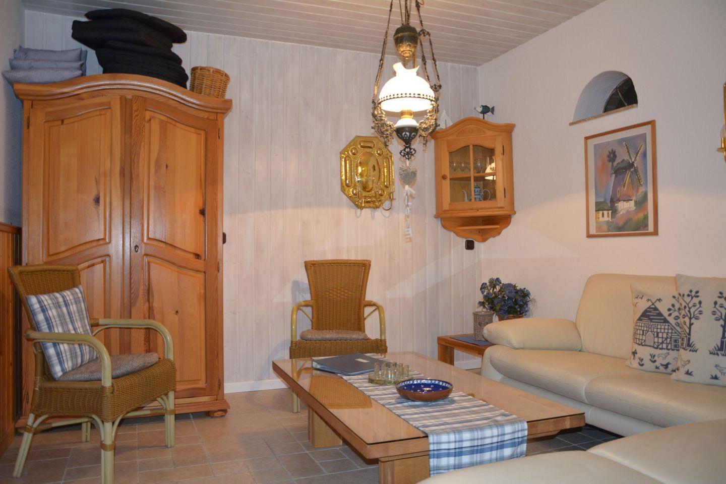Gemütliche Ferienwohnung am Waldrand in Nebel mit Terrasse, Strandkorb und Zugang zur Gartensauna.