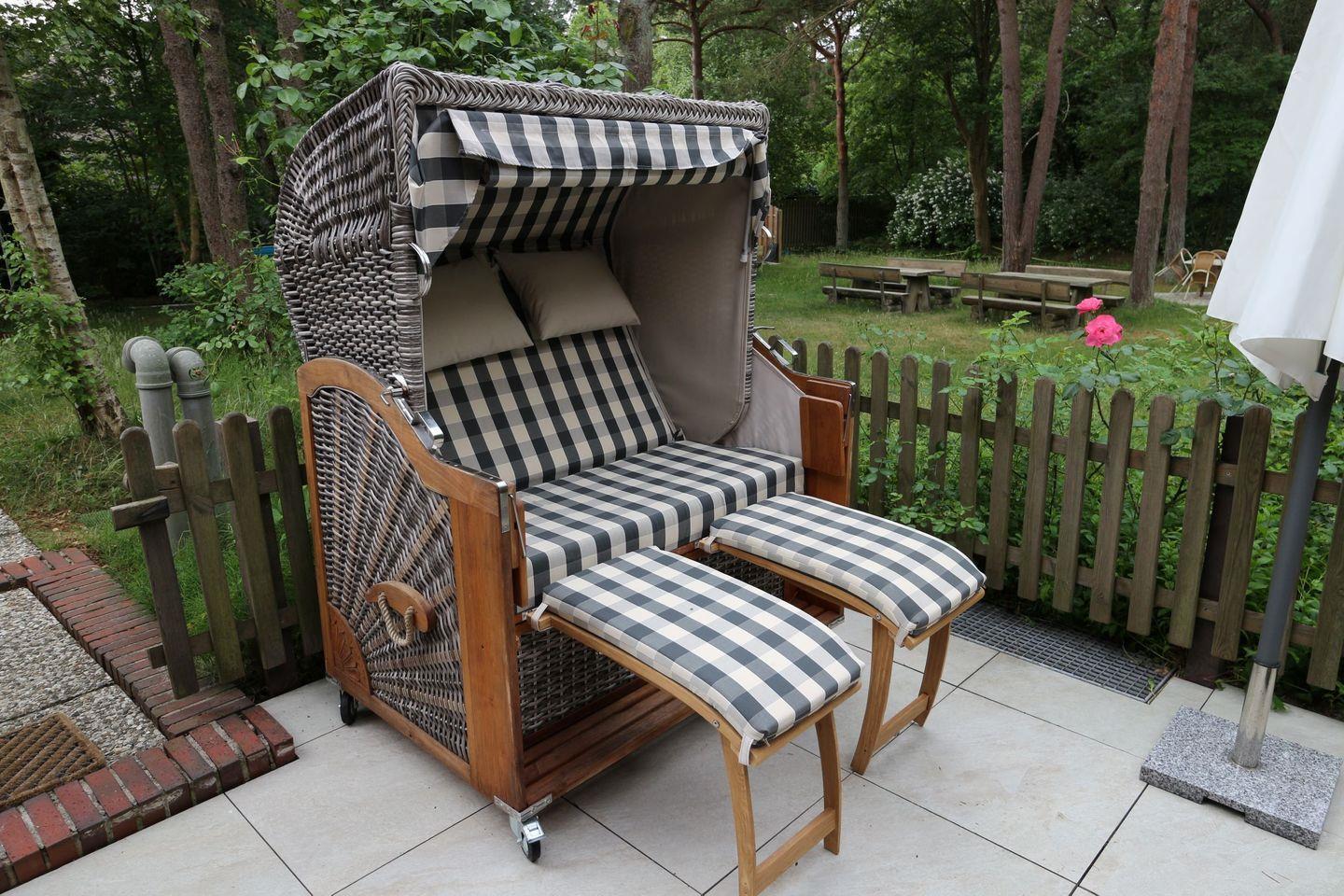 Schöne Wohnung am Waldrand mit Terrasse und Strandkorb
