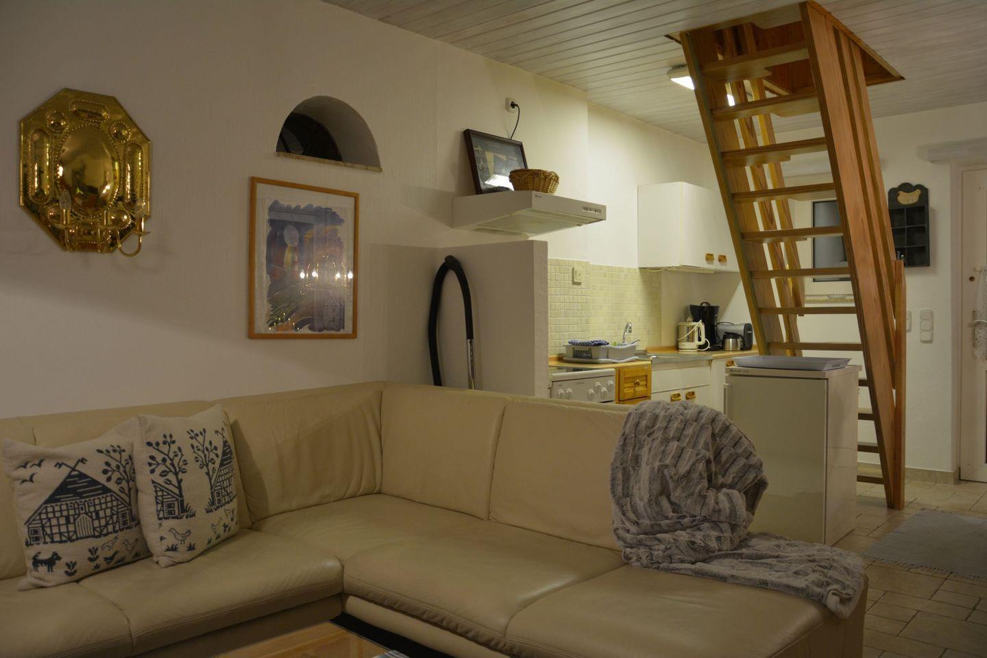 Schön kleine Ferienwohnung auf 2 Ebenen mit Terrasse und Strandkorb.