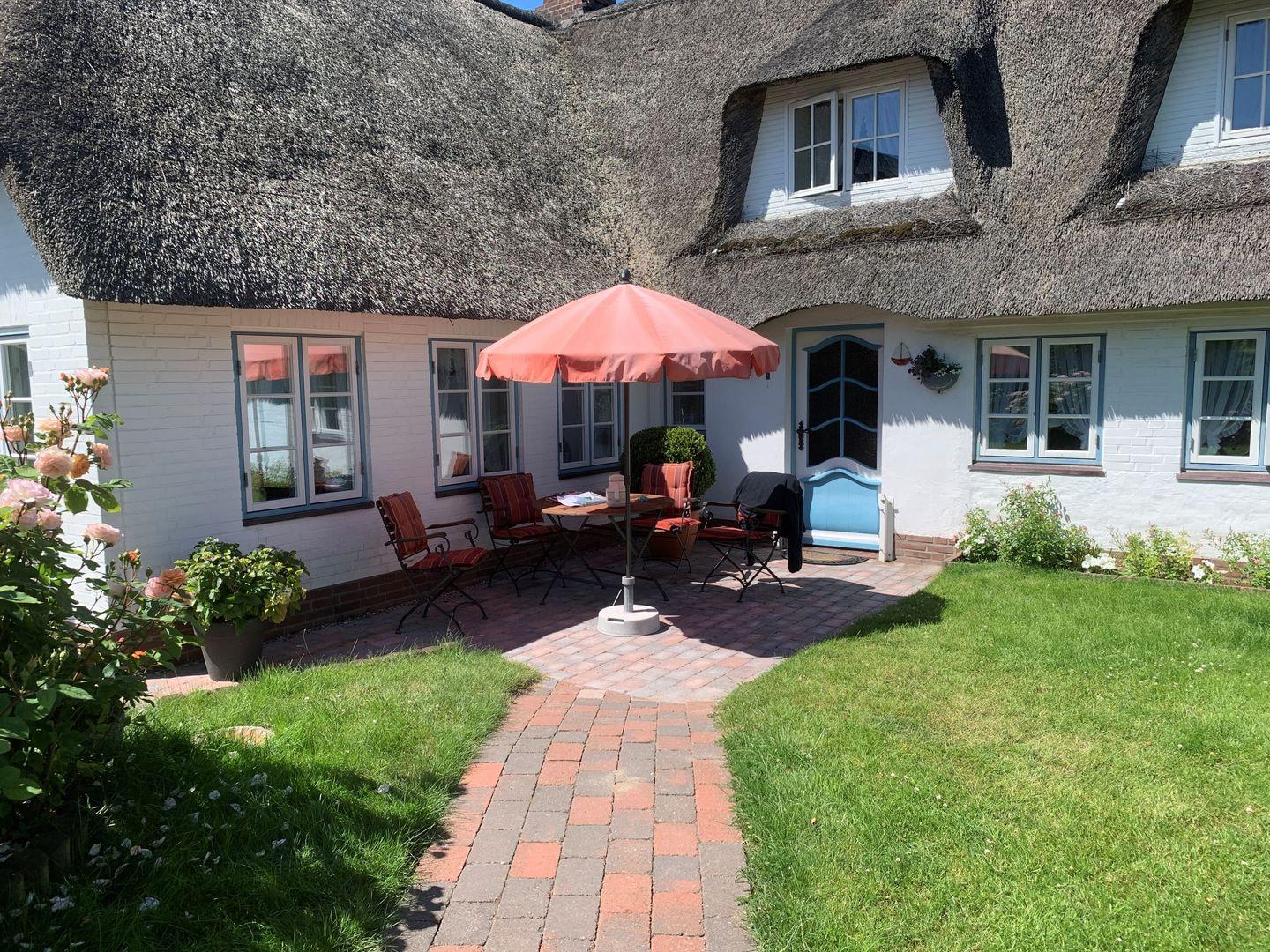 Sie wohnen in einem historischen reetgedeckten Friesenhaus in der Ortsmitte von Nebel