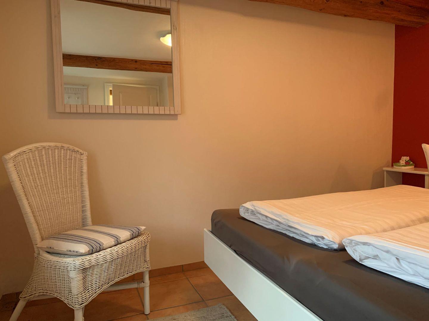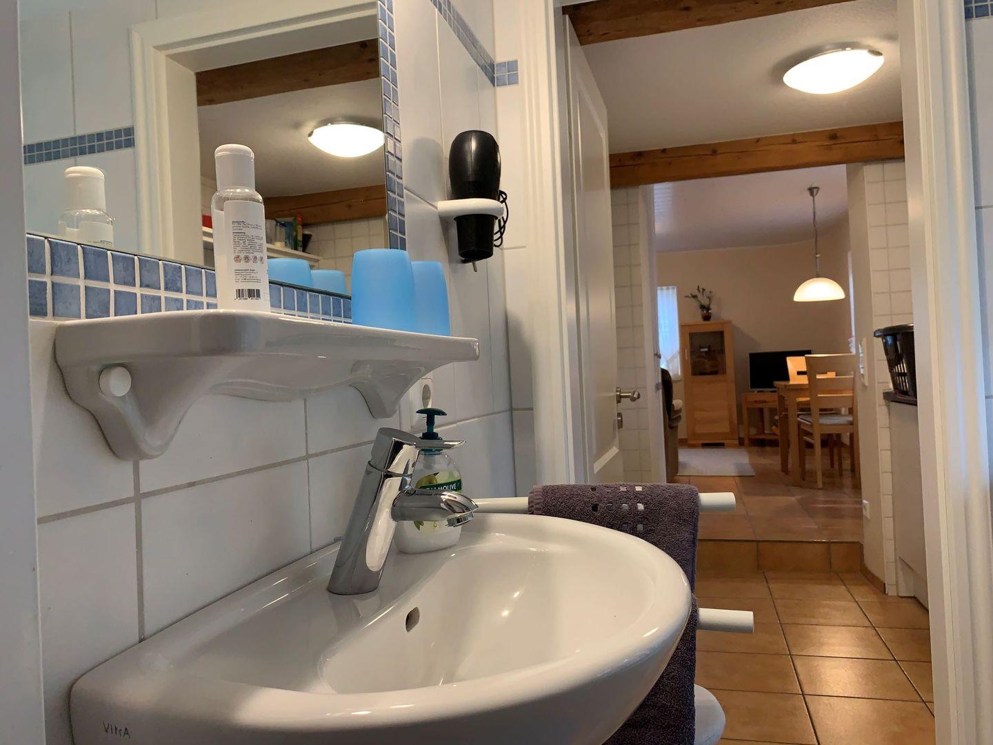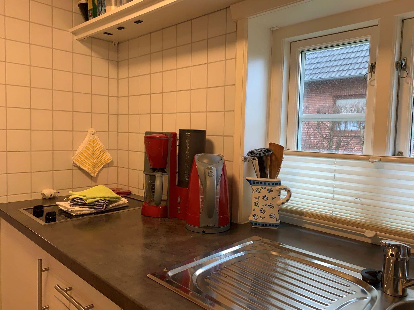 Diese kleine mit viel Liebe ausgestattete Ferienwohnung liegt im Erdgeschoß des Hauses. Sie ist trotz der kleinen Friesenfenster sehr hell. Das Wohnzimmer ist modern mit Sofa , TV, und Schrank eingerichtet. Durch die zweckmässig eingerichtete Küche gelangen sie in das renovierte Bad und das Schlafzimmer mit Doppelbett.