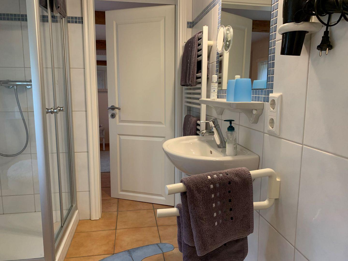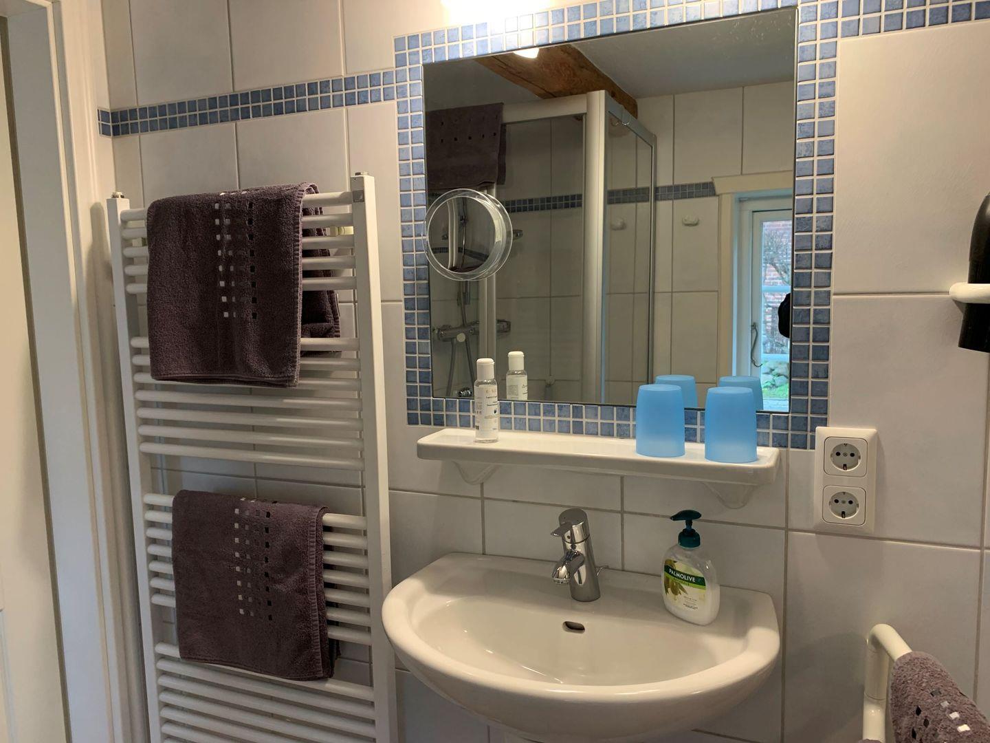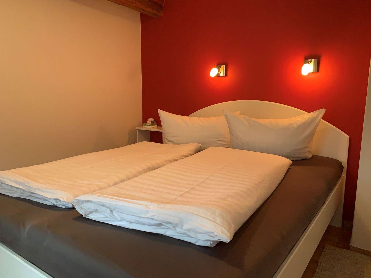 Diese kleine mit viel Liebe ausgestattete Ferienwohnung liegt im Erdgeschoß des Hauses. Sie ist trotz der kleinen Friesenfenster sehr hell. Das Wohnzimmer ist modern mit Sofa , TV, und Schrank eingerichtet. Durch die zweckmässig eingerichtete Küche gelangen sie in das renovierte Bad und das Schlafzimmer mit Doppelbett.