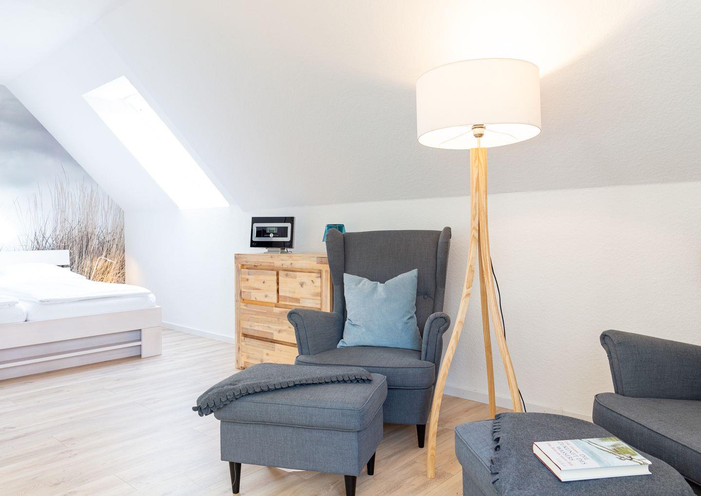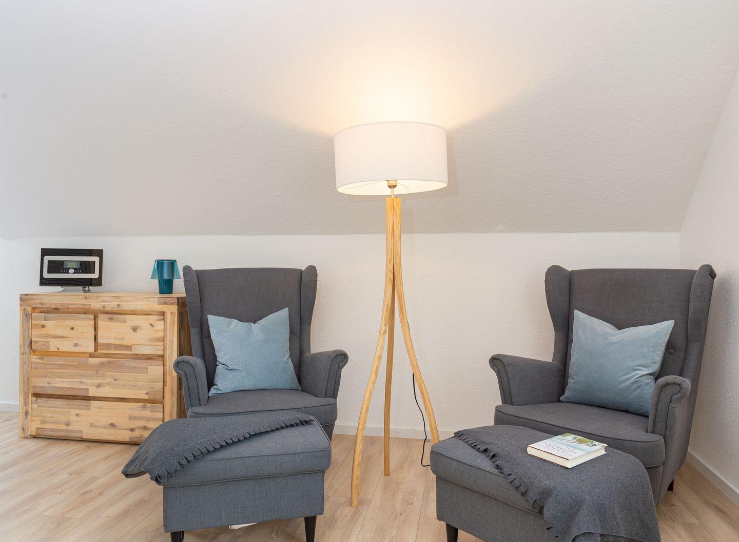 Die Wohnung "54 Nord" liegt extrem ruhig und ist trotzdem nah am Nebeler Ortskern. Eine moderne Einrichtung bietet Raum für Gemütlichkeit und Entspannung.