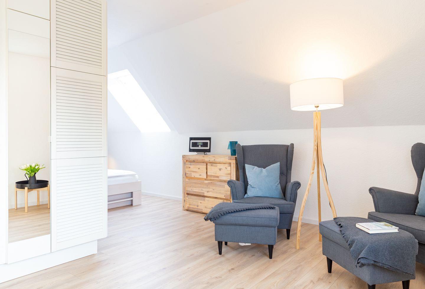Mit viel Liebe zum Detail und in einer tollen Lage befindet sich diese von Licht durchflutete Ferienwohnung. Ein offenes Wohn- und Esszimmer samt gemütlicher Schlafecke, sowie ein Badezimmer mit Tageslicht und großer begehbarer Dusche, freuen sich auf Sie.