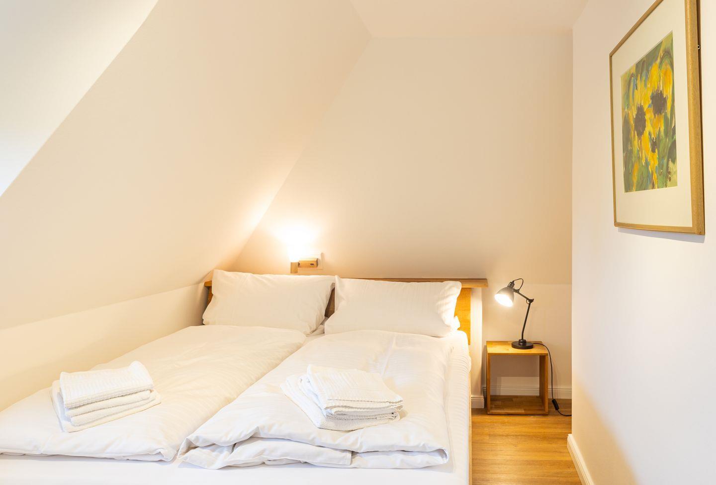 - Schlafzimmer mit einem 160 x 200 cm Doppelbett und 2 Einzelbetten 90 cm breit