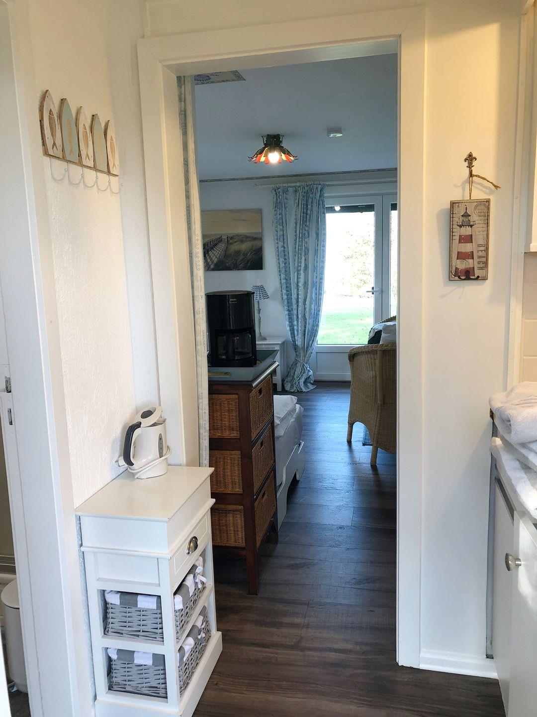 Die Bungalow verfügt über 1 Wohnraum mit WLAN, Sat-TV und Pantry-Küche, 1 Badezimmer mit Dusche und WC; Nord-Terrasse mit Gartenmöbeln (April bis Oktober) und Blick über das große, parkähnliche Grundstück zum Wattenmeer. Ein PKW-Stellplatz ist vorhanden.
