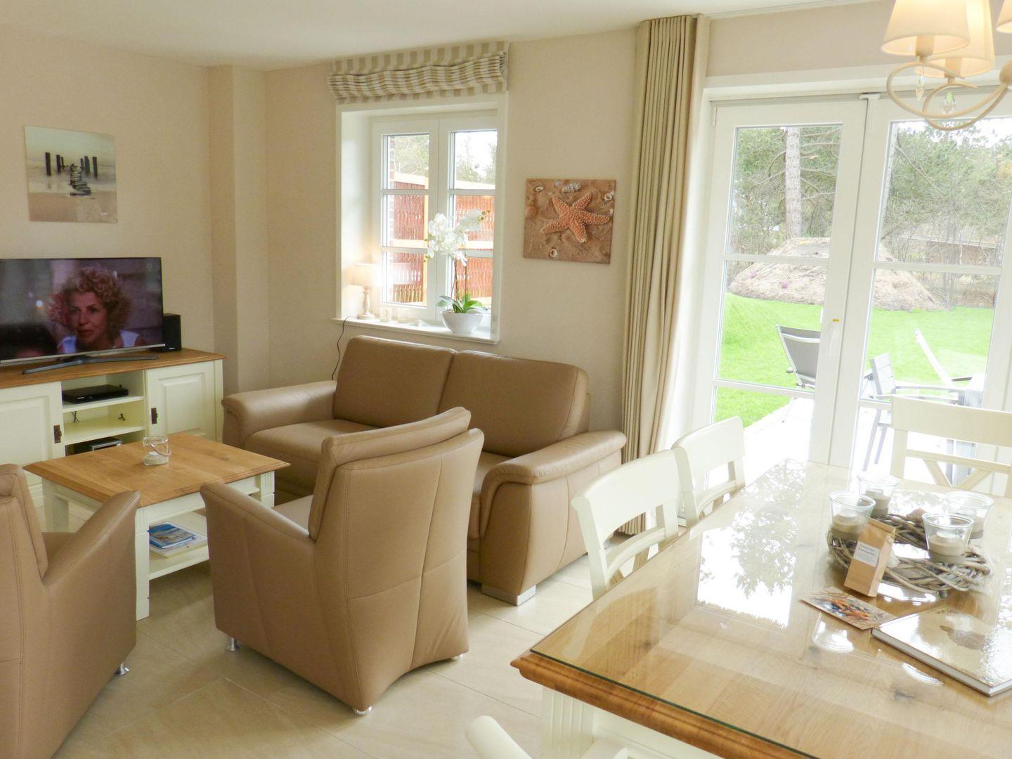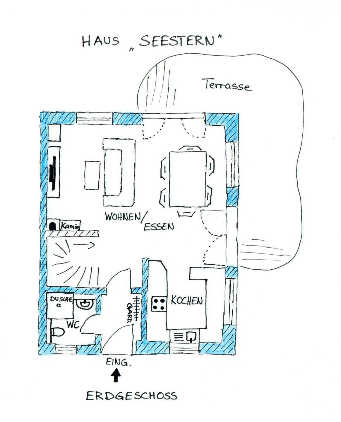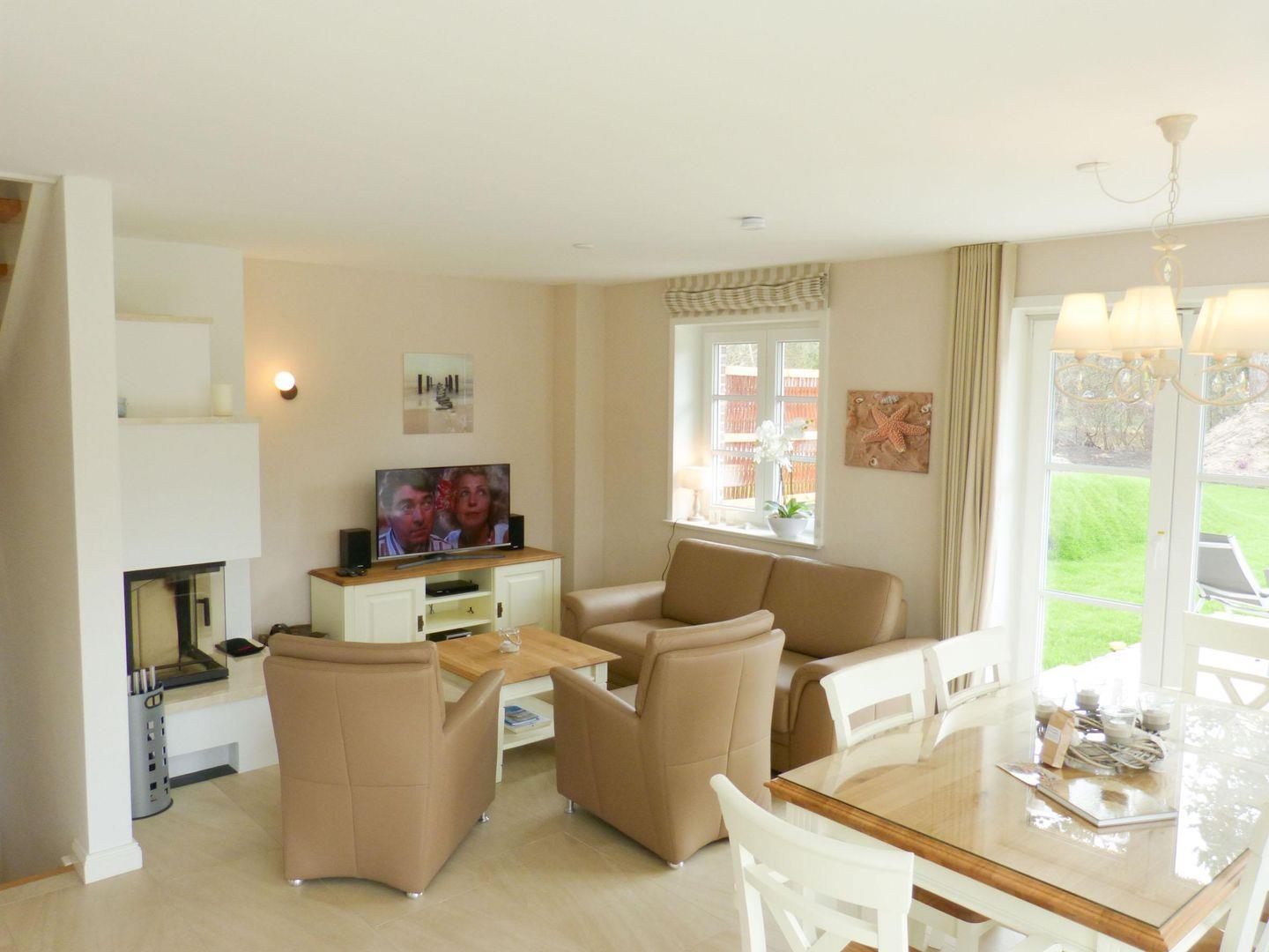 Die Wohnung verfügt über 1 Wohnraum mit Kamin, WLAN, Sat-TV und offener Küche, 2 Schlafzimmer, 1 Relax- / Schlafraum im Kellergeschoss, 2 Badezimmer mit Dusche und WC; 1 Badezimmer mit Badewanne, Dusche und WC; eine eigene Süd-Terrasse und Garten mit Gartenmöbeln (April bis Oktober).