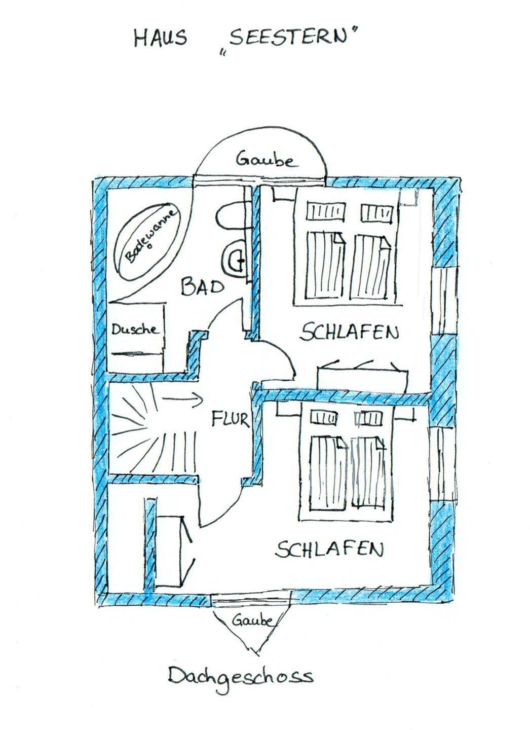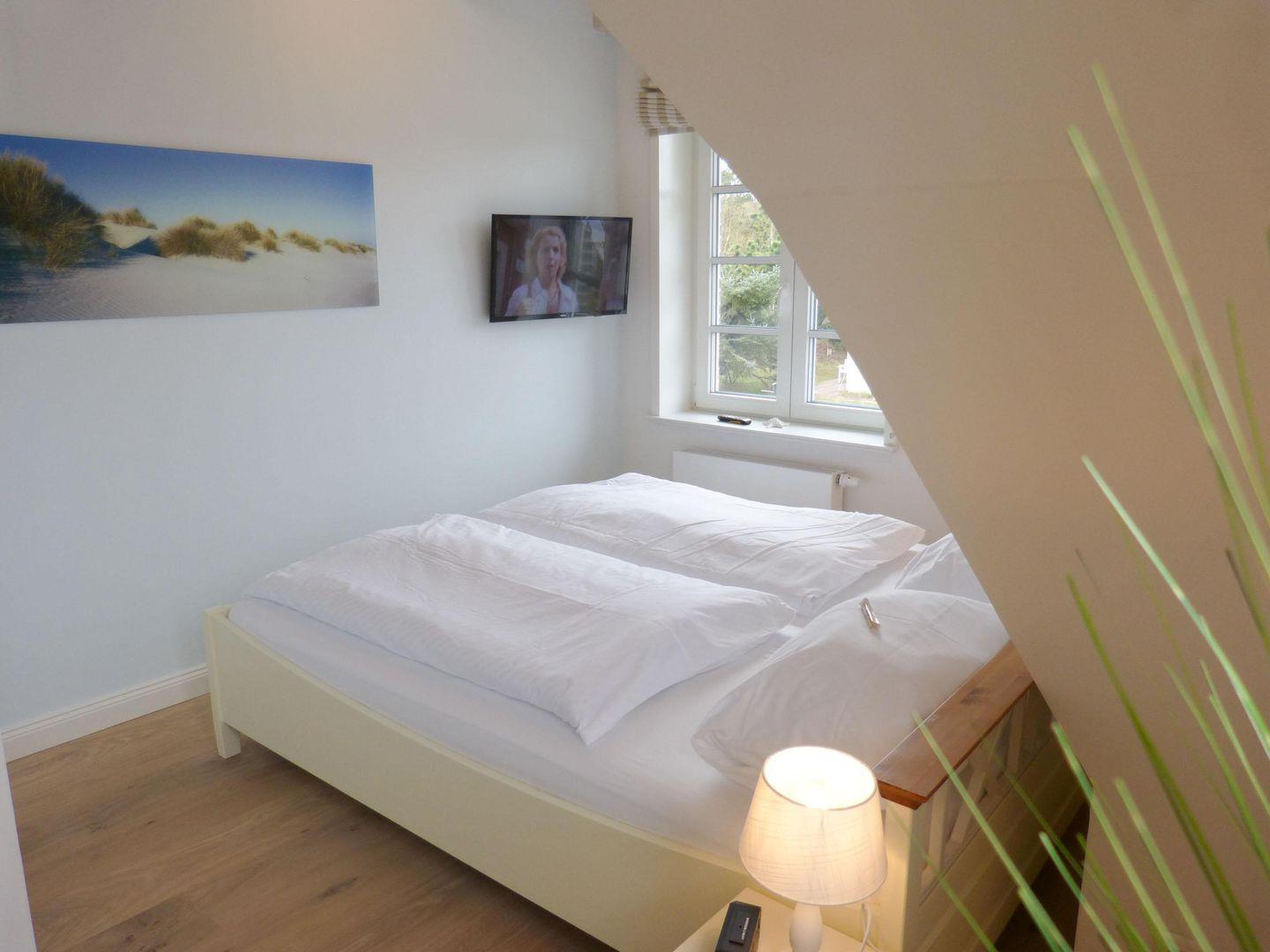 Die 4-Zimmer-Friesenhaushälfte *Seestern* unter Reet (ca. 110 qm Grundfläche) über 3 Etagen im *Heidehüs* in Süddorf auf Amrum bietet Schlafmöglichkeiten für 2 bis 5 Personen.