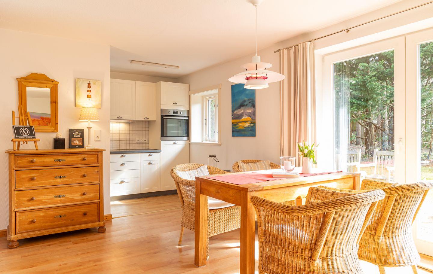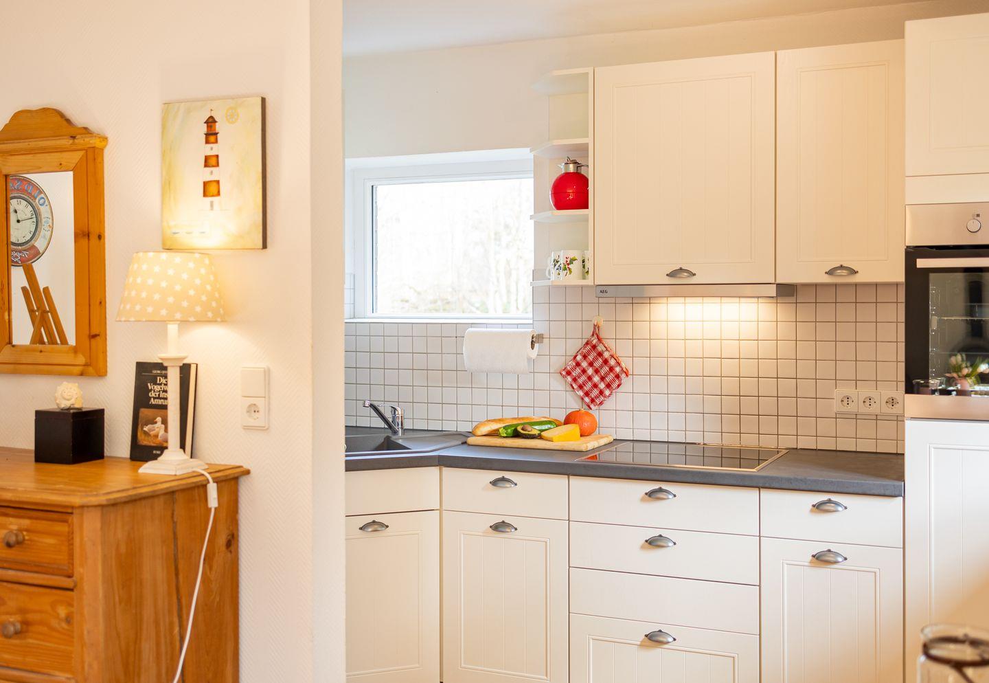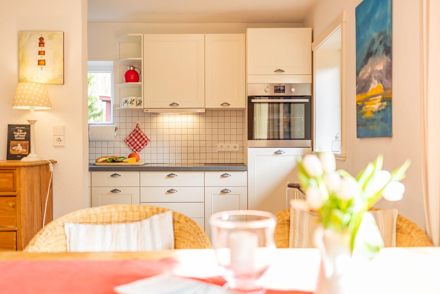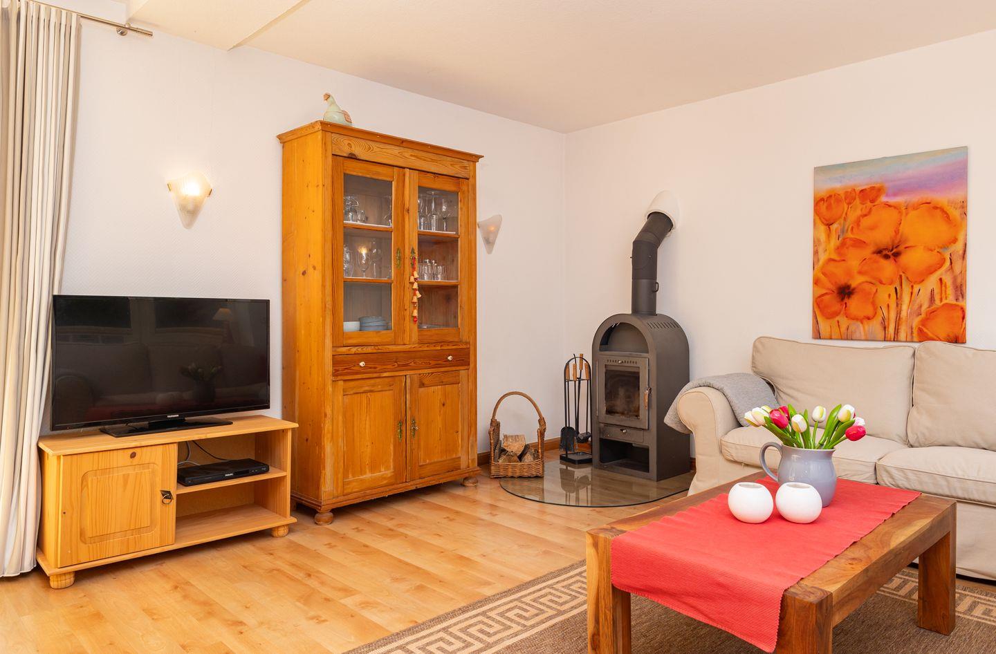 Das 4-Sterne-Haus bietet Ihnen allen Komfort für bis zu 4 Personen mit Wohnzimmer, Küche, Bad, Gäste WC, zwei separaten Schlafzimmern und einem gemütlichen dänischen Ofen. Das Haus ist sehr liebevoll zum Teil mit antiken Möbeln eingerichtet und verfügt über einen großen Plasma-TV und Radio mit CD-Player. Die sehr großzügige Küche enthält einen Geschirrspüler und Backofen.Tisch- und Bettwäsche sowie Handtücher werden gestellt. Waschmaschine und Trockner sind am Haus und kostenfrei nutzbar. Gepflegte Fahrräder stehen zu Ihrer freien Nutzung bereit.